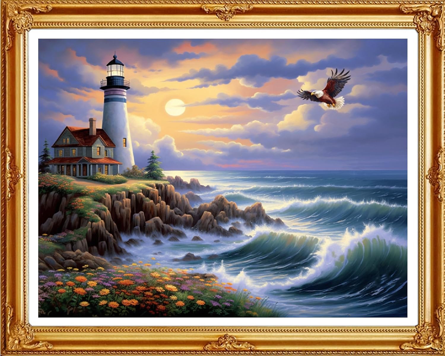 Redxing Stamped Cross Stitch Kits Full Range of Embroidery Starter Kits- Needlepoint Counted Cross Stitch Kits for Beginner Adults 11CT Printed Embroidery Kit-Seaside Lighthouse 16x20 inch