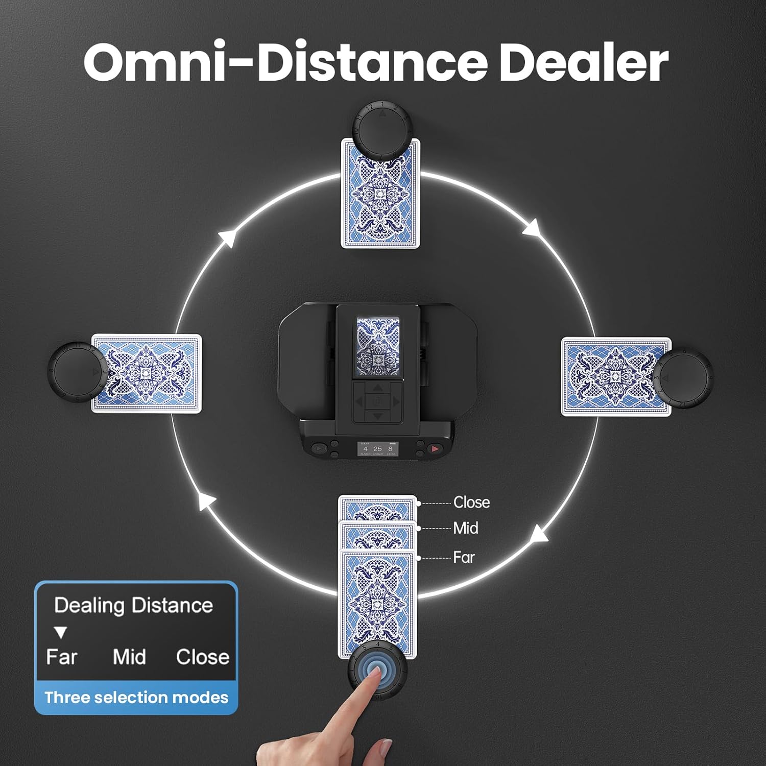 - [Customizable Dealing Options] With DrawPies Max6, you can adjust player numbers, card counts, dealing direction, and distance to match the game you're playing. Whether it's Poker, UNO, or Five Crowns, the machine offers flexibility to adapt to various rules and playstyles. It also includes quick setup options for popular games like Texas Hold'em and Bridge.
