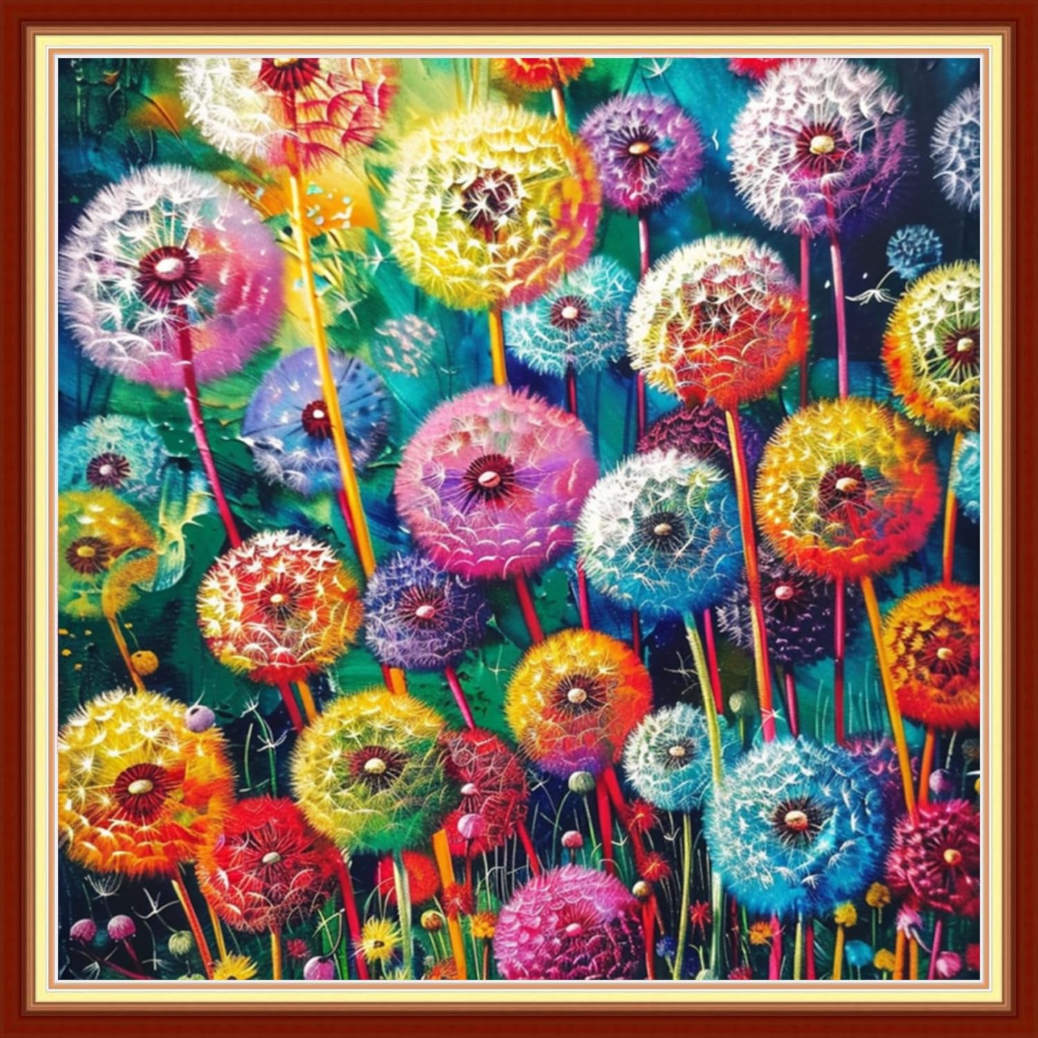 Joyhoor Stamped Cross Stitch Kits for Beginners, Needlepoint Kits for Adults, 11CT Counted Embroidery Kits-Colorful Dandelion 18x18 inchs
