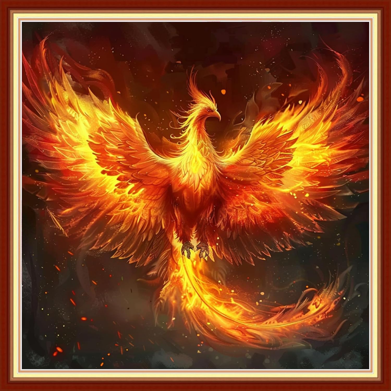 Joyhoor Stamped Cross Stitch Kits for Beginners, Needlepoint Kits for Adults, 11CT Counted Embroidery Kits-Fire Phoenix 18x18 inchs