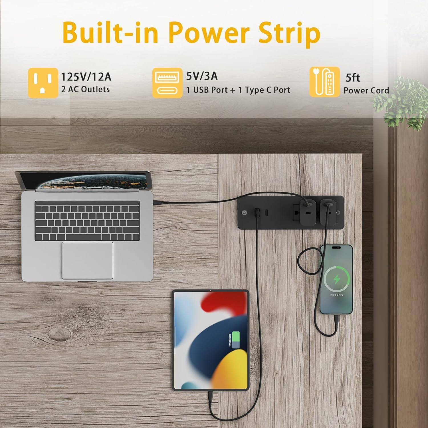 - L Shape Desk with Power Outlets - The l desk has built-in power outlets featuring two AC outlets, one USB port, and one Type-C port, simplifying charging and cutting down on cable clutter.