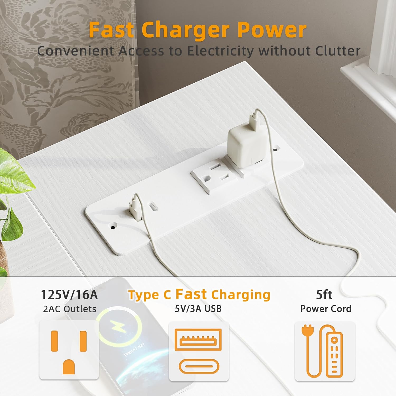 - L Shape Desk with Power Outlets - The l desk has built-in power outlets featuring two AC outlets, one USB port, and one Type-C port, simplifying charging and cutting down on cable clutter.