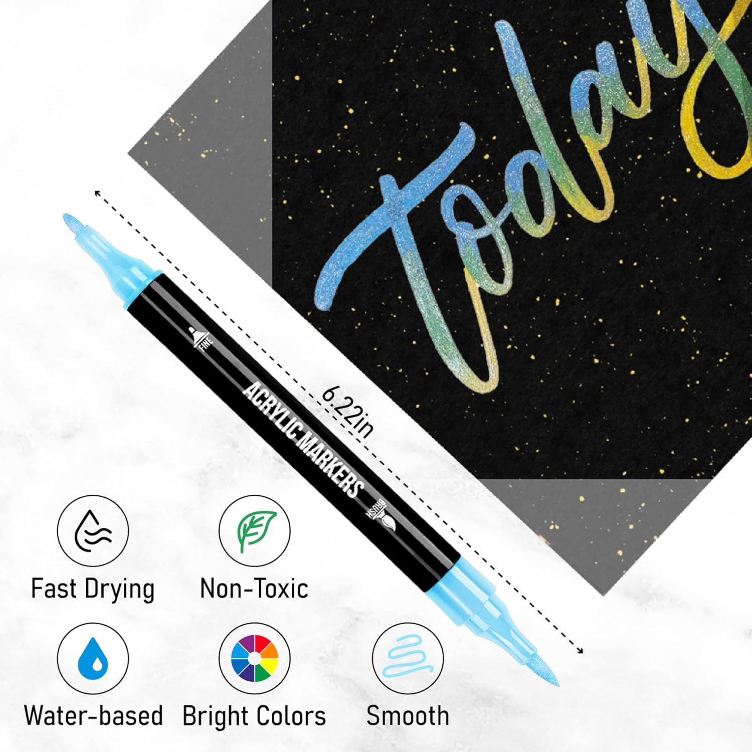 - 【Versatile Dual-Tip Design】: Unleash your creativity with our acrylic markers featuring a unique dual-tip design. The extra-fine tip is perfect for intricate details, while the brush tip allows for expressive brushstrokes. From delicate line work to bold sweeps, these markers adapt effortlessly to your artistic vision.