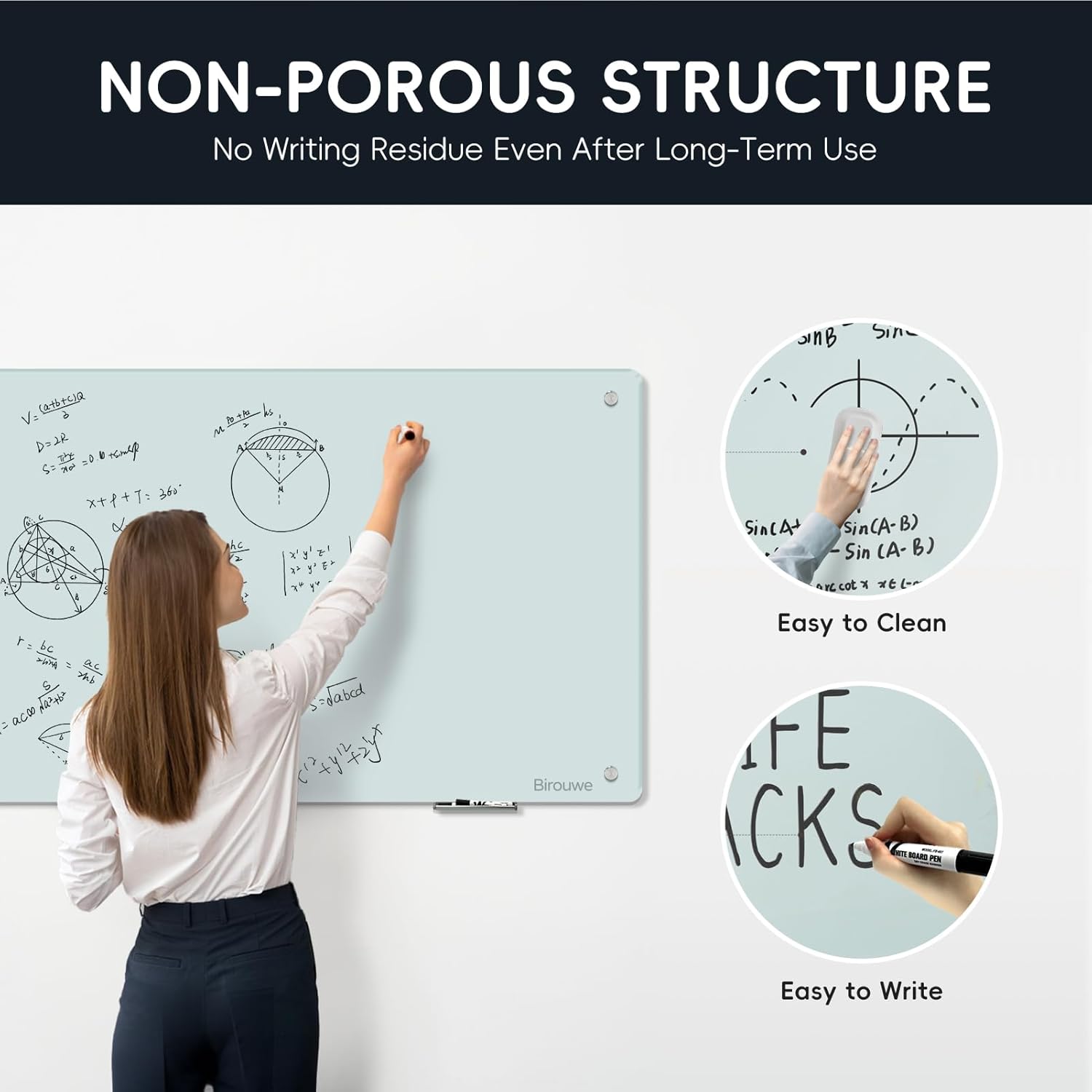 - Superior Durability & Clarity: Crafted from high-density tempered glass, our dry erase whiteboard offers unmatched durability and resilience. It resists stains, ghosting, scratches, and dents, ensuring a clear and pristine surface for years of heavy use. Perfect for frequent writing, erasing, and rewriting without leaving any marks.