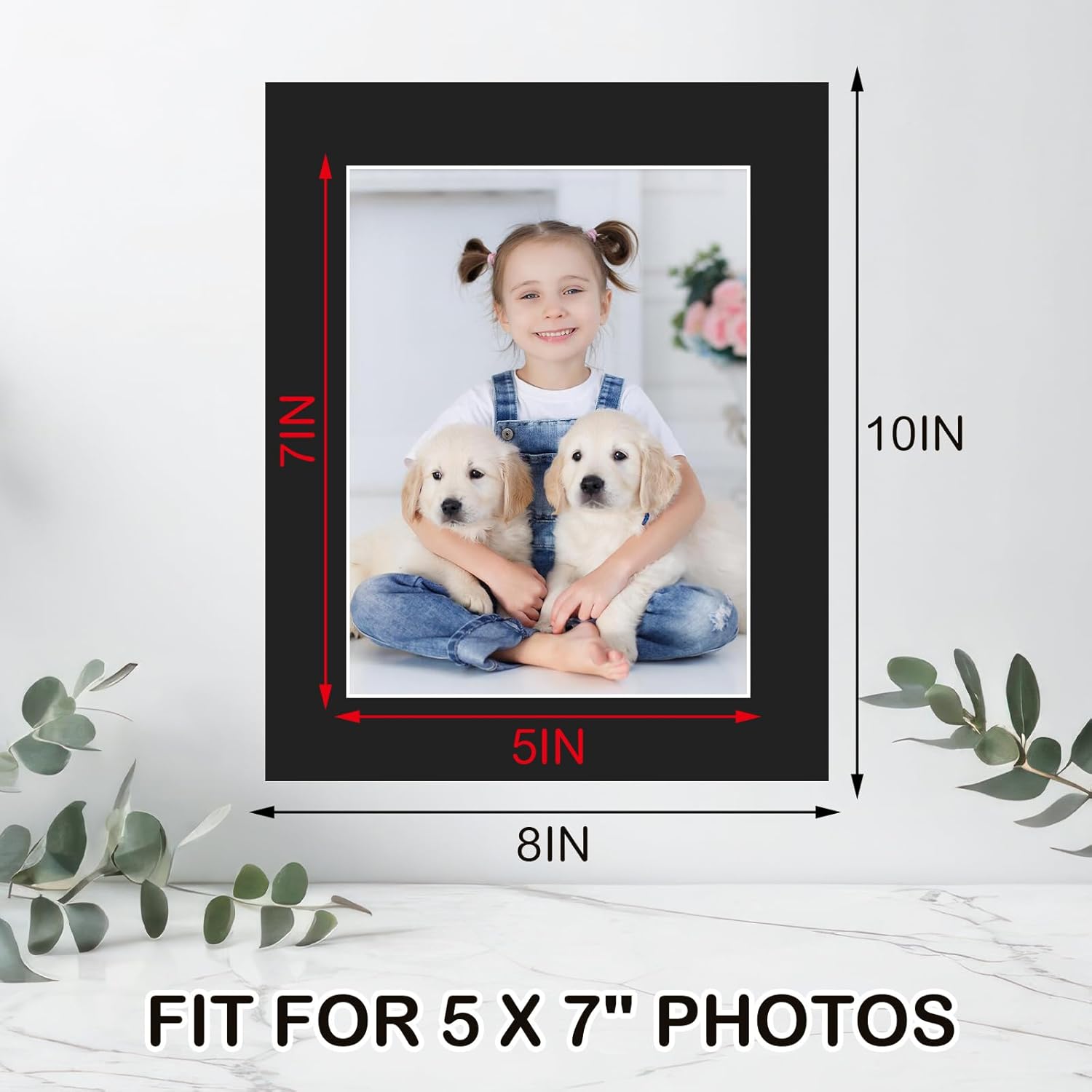 - 8x10 Black Picture Mats for 5x7 Photos: 15 pack black picture mats, the outer frame size of the photo frame mat is 8*10 inch / 200*252 mm, and the inner frame size is 4.8*6.8 inch / 122*173 mm, black picture mats 8*10, suitable for 5*7 photos.