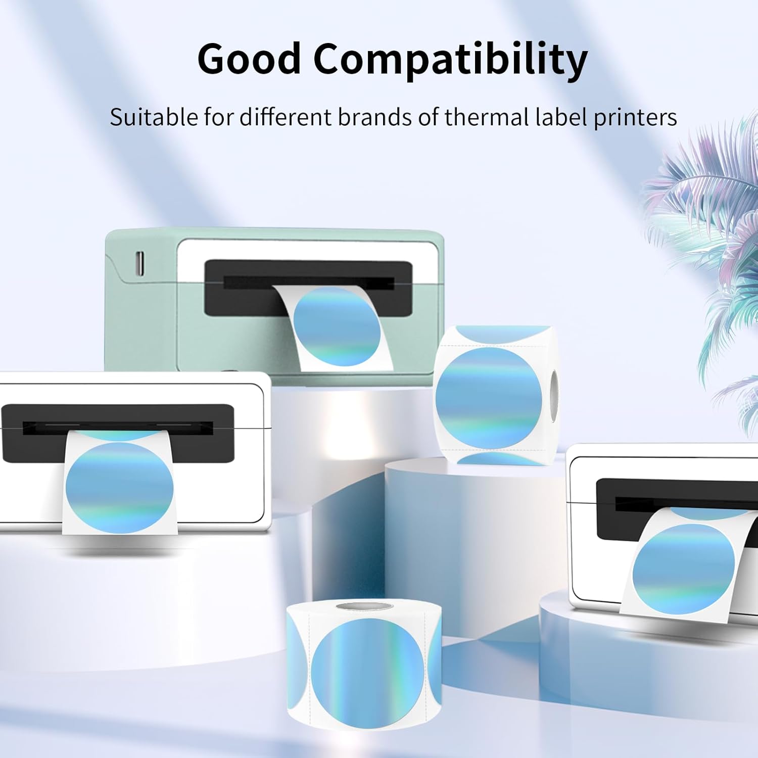 - Package: Holographic BlueThermal Sticker Labels 2" Round, 300 Labels/Roll. It’s printable with a thermal printer, No ink toner or ribbons are needed