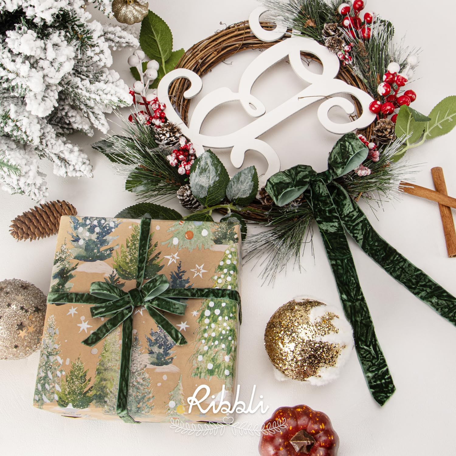 Ribbli Forest Green Velvet Ribbon 1 Inches Luxury Crinkled Green Christmas Ribbon for Gift Wrapping Crafts Home Decor-Continuous 10 Yard
