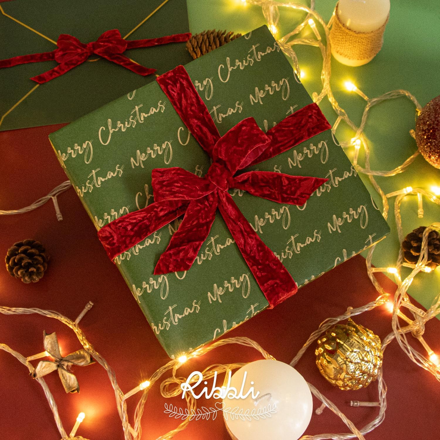 Ribbli Red Velvet Ribbon 3/8 Inches Luxury Crinkled Red Christmas Ribbon for Gift Wrapping Crafts Home Decor-Continuous 10 Yard
