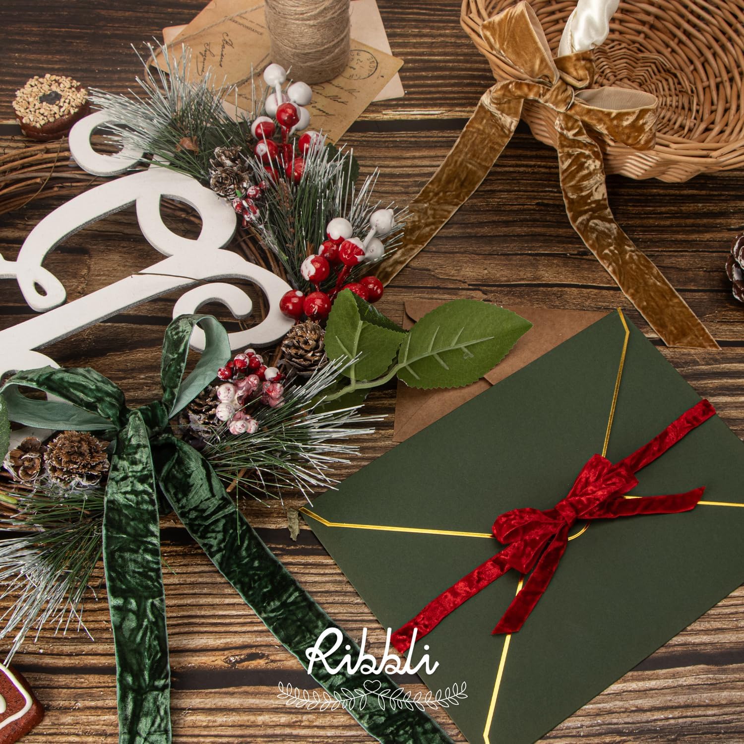 Ribbli Khaki Velvet Ribbon 3/8 Inches Luxury Crinkled Brown Christmas Ribbon for Gift Wrapping Crafts Home Decor-Continuous 10 Yard