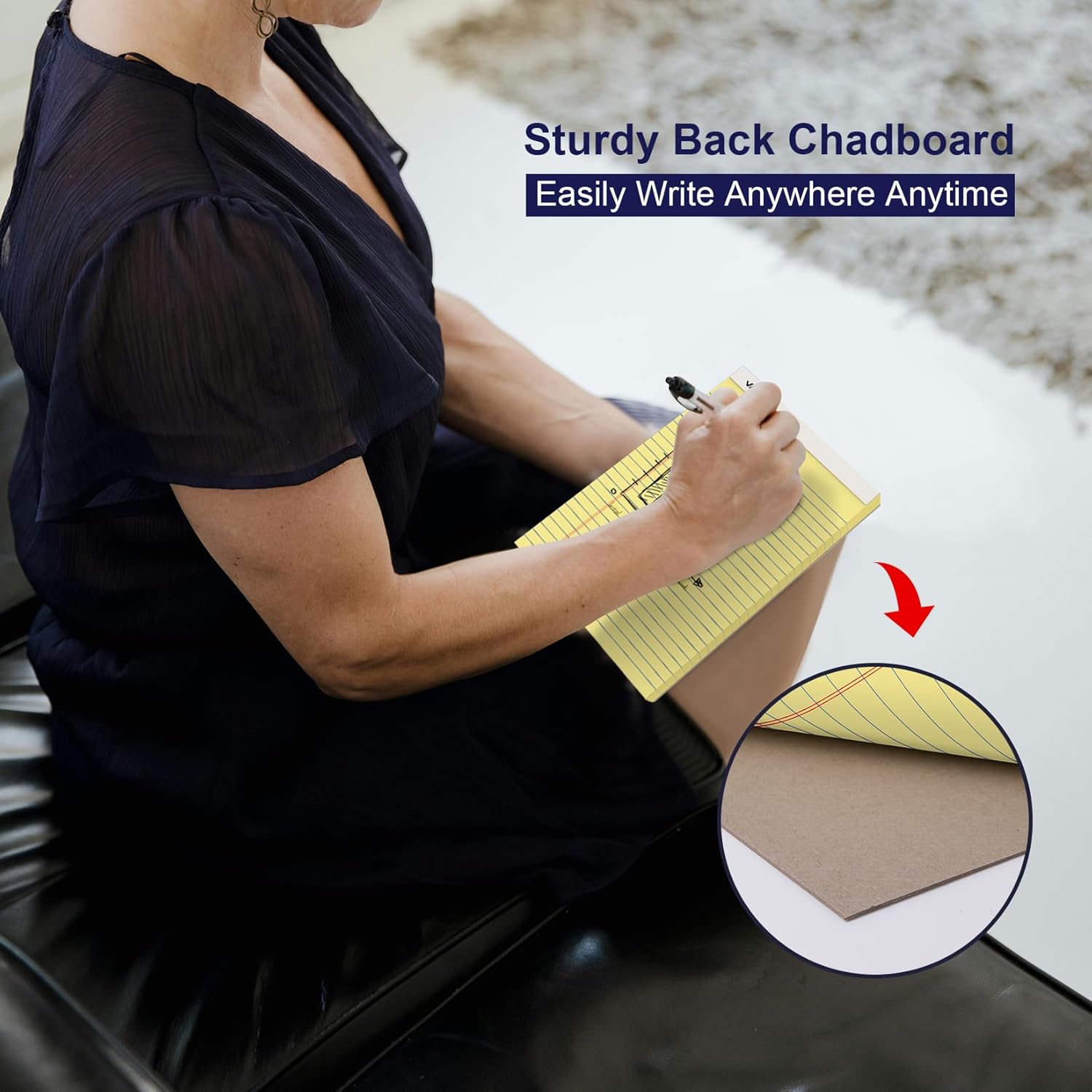 - ăPortable SizeăThis 5 x 8 inch legal notepad is the perfect size to carry out. It's large enough to take detailed notes yet compact enough to easily fit into a briefcase, backpack, or handbag, making it an ideal choice for work and study on the go. And the canary yellow paper is very friendly to the eyes and helps reduce eye fatigue while writing.