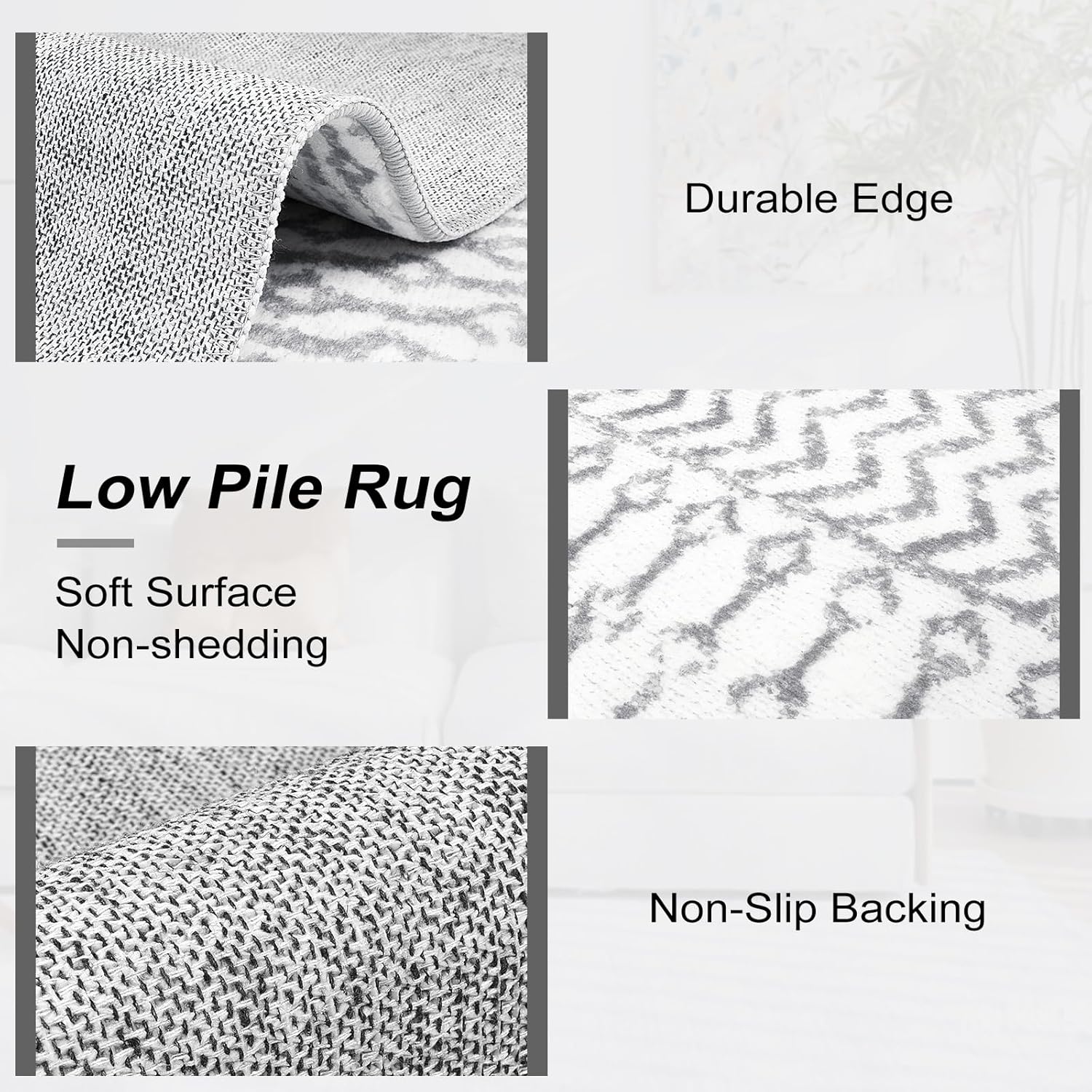 - 【Soft & Non-Shedding Rug】: Our area rugs is made of faux wool, soft cozy material is friendly to pets and children's skin.The low -pile gray rug features high density , pile almost non-shedding.The ultra soft touch protects your feet from the cold and hard floors, bringing comfort and warmth to your feet