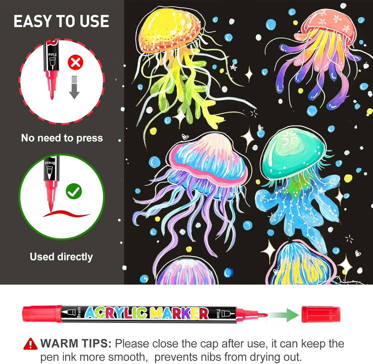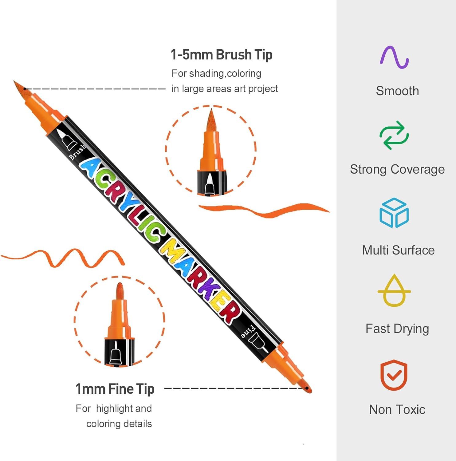 24 Colors Dual Tip Acrylic Paint Markers, Premium Acrylic Paint Pens for Halloween Decorations, Pumpkin Painting Kit, Rock Painting, Canvas, Stone, Wood, Glass, DIY Crafts & Art Supplies