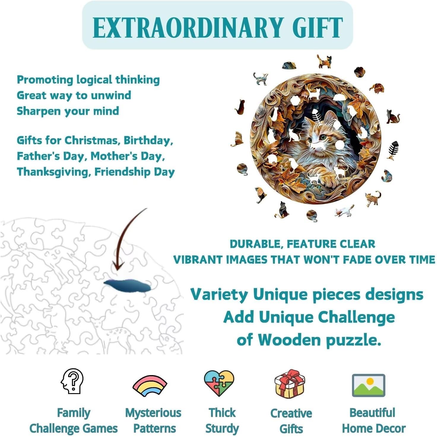 - 【PERFECT GIFT FOR ANY OCCASION】Searching for a memorable gift? Look no further. Packaged in an elegant gift box, this 3d Wooden Cat Puzzles For Adults is a slam-dunk Birthday gift for your wife, a thoughtful Mother's Day surprise for mom, or a unique Christmas present for Dad. It's an unforgettable token for Valentine's Day, a fun Thanksgiving family activity, and the go-to present for both women and men who appreciate a beautiful challenge.