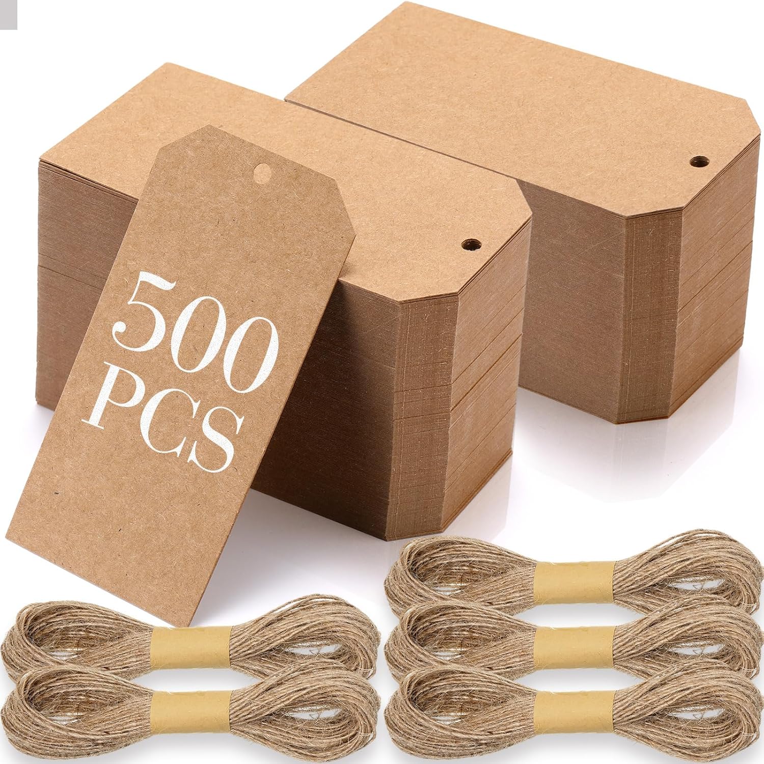 - Satisfy Your One Time Purchase Needs: you will get a total of 500 gift tags with holes, and 5 rolls of twines for gift wrapping tag, which is a complete combination for satisfying your needs of festival or daily party