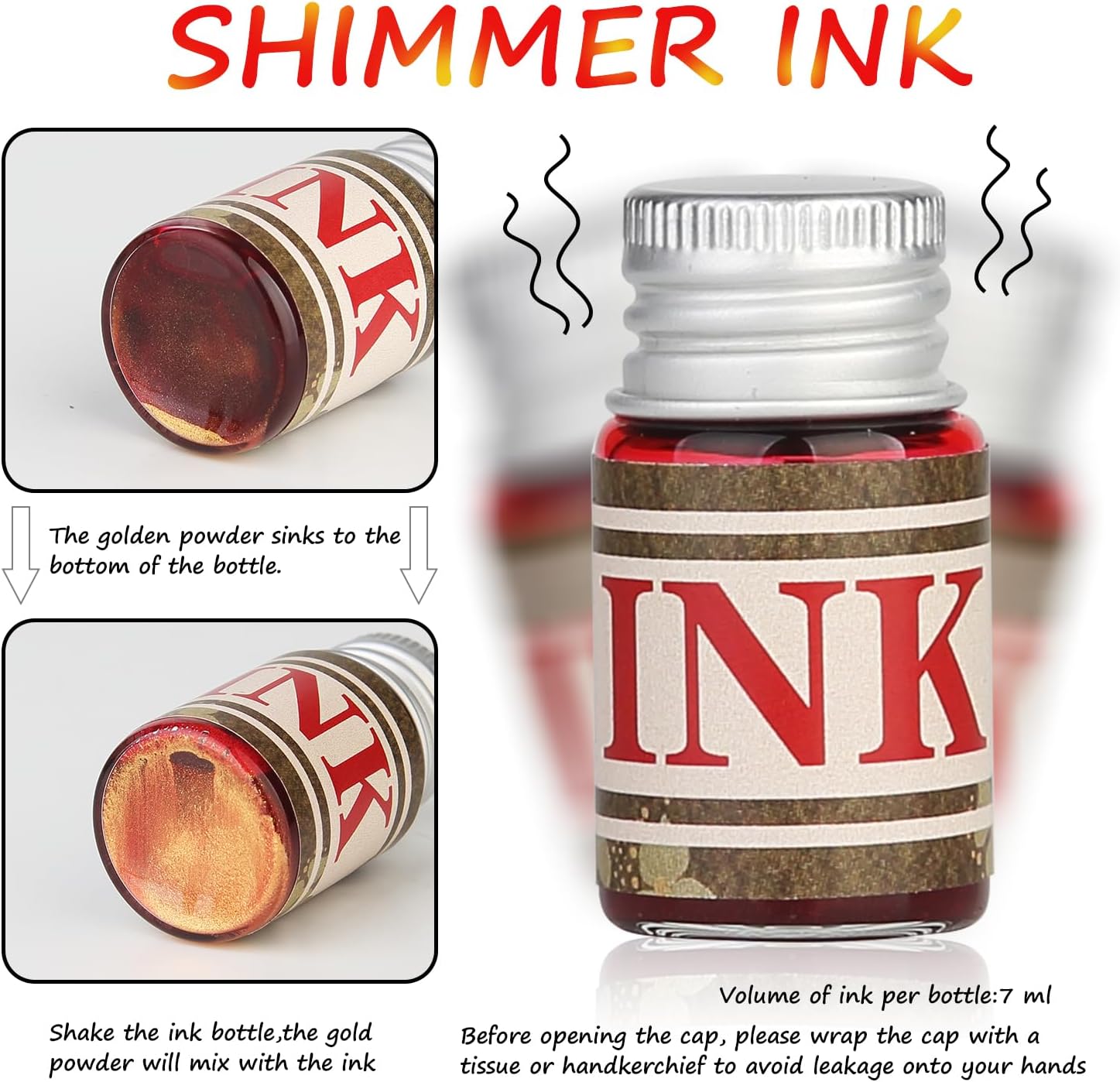 - ❤Artistic and Versatile: This signature pen is great for drawing and writing. Made of high borosilicate glass.5 bottles 7 ml colors of ink contain gold powder, which enables your handwriting and painting to become more awesome