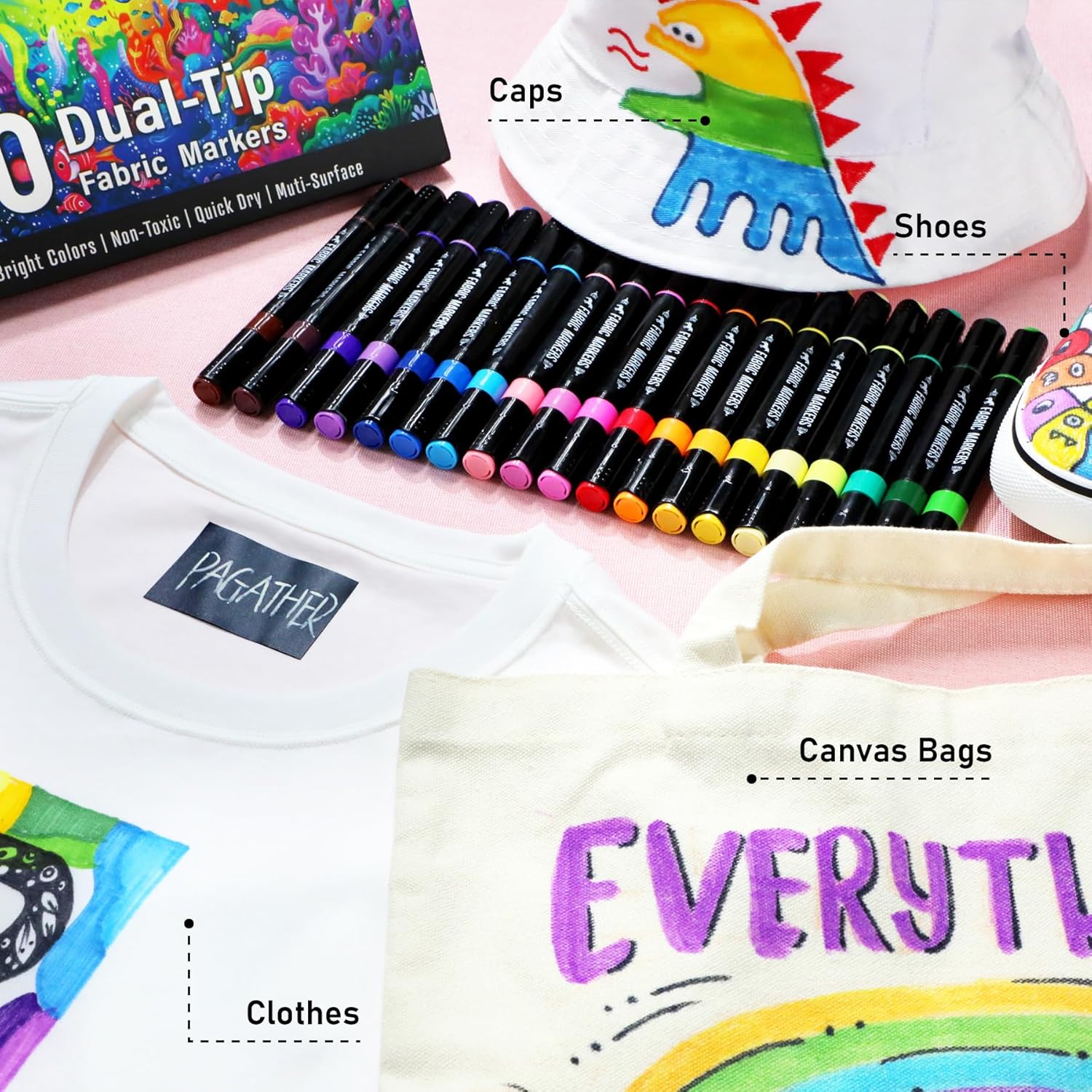 - 【Perfect Gift for Creativity Enthusiasts】Unlock the creative potential of kids, teens, and adults with our fabric markers – an ideal and unique gift choice. Whether it's for birthdays, Easter, Halloween, Christmas, Valentine's Day, Thanksgiving, New Year, or any special occasion, these markers are the perfect present to spark creativity and artistic inspiration.