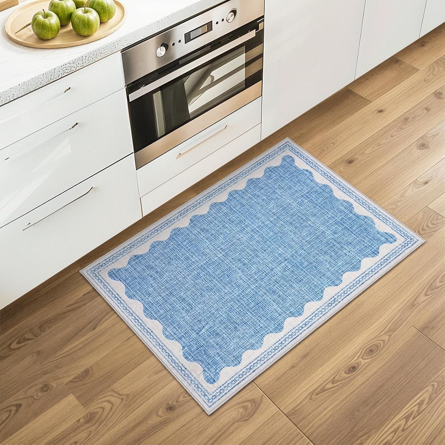 - 【Non-Slip Backing】 Our scalloped rug is made of high-quality washable backing, keeps the blue rugs securely in place, and is effective at preventing the 2x3 washable rug from sliding on the floor while protecting the floor from scratches made by heels and sharp objects, for children playing on the floor is a great choice, perfect fit for high traffic areas.