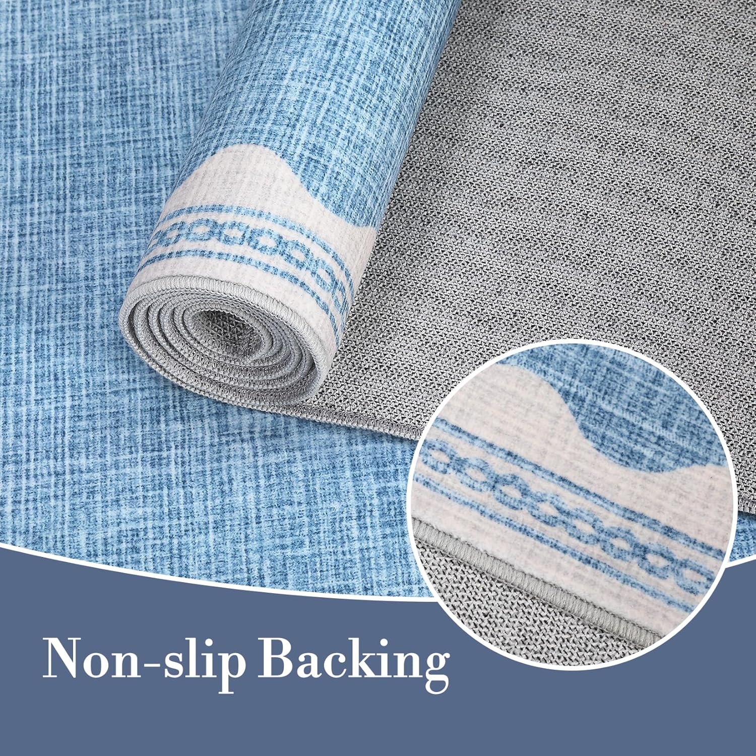 - 【Non-Slip Backing】 Our bedroom rug is made of high-quality washable backing, keeps the blue rugs securely in place, and is effective at preventing the washable rugs 8x10 from sliding on the floor while protecting the floor from scratches made by heels and sharp objects, for children playing on the floor is a great choice, perfect fit for high traffic areas.