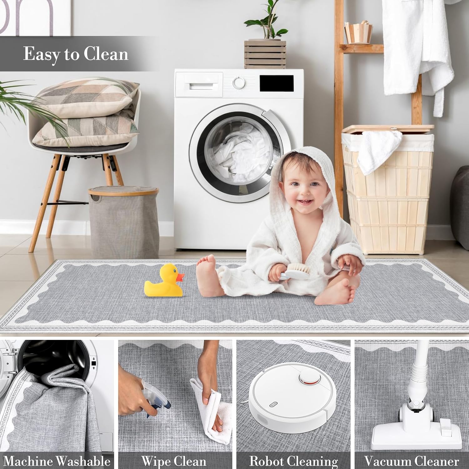 - 【Timeless Unique Scalloped Design】It is a gorgeous washable and foldable rug featuring a minimal neutral cream tone with a scalloped edge design. A timeless, modern, and unique design to add to any space.Due to the nature of printing, the 5x7 rugs design may vary slightly from the product photos, making each scalloped rug unique.