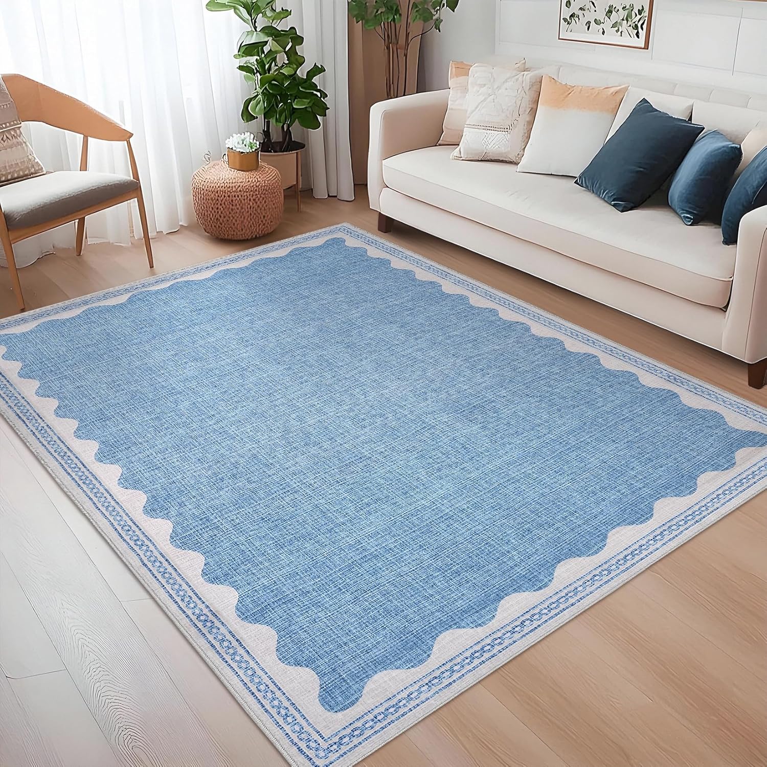 - 【Timeless Unique Scalloped Design】It is a gorgeous washable and foldable rug featuring a minimal neutral cream tone with a scalloped edge design. A timeless, modern, and unique design to add to any space.Due to the nature of printing, the 5x7 rugs design may vary slightly from the product photos, making each scalloped rug unique.