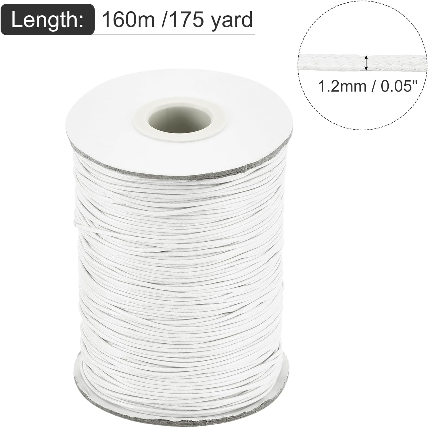 MECCANIXITY Waxed Cord 1.2mm Waxed Polyester Cord 175 Yard Wax String for Bracelet Making,Necklaces, Beading,Jewelry Making and DIY Crafts(White)