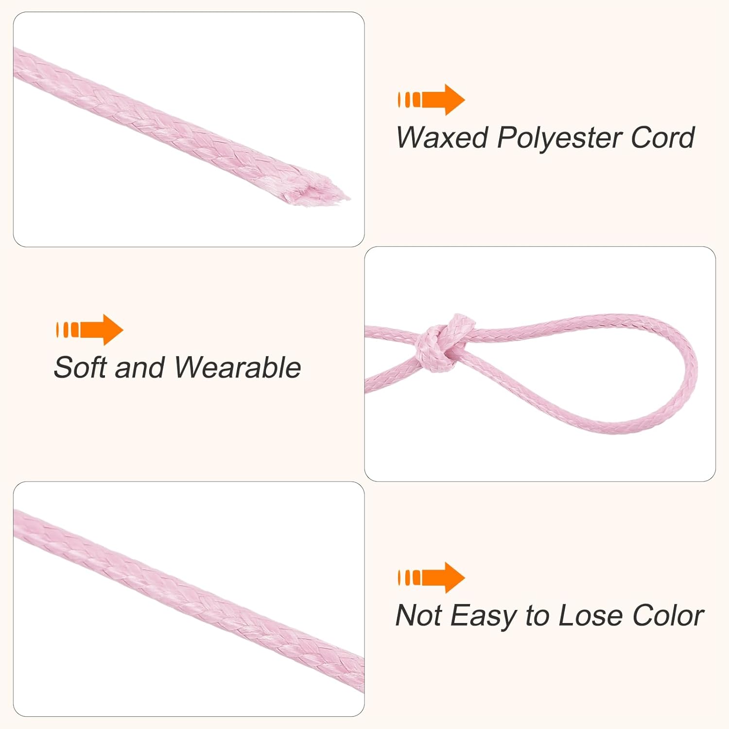 MECCANIXITY Waxed Cord 1.2mm Waxed Polyester Cord 175 Yard Wax String for Bracelet Making,Necklaces, Beading,Jewelry Making and DIY Crafts(Light Pink)
