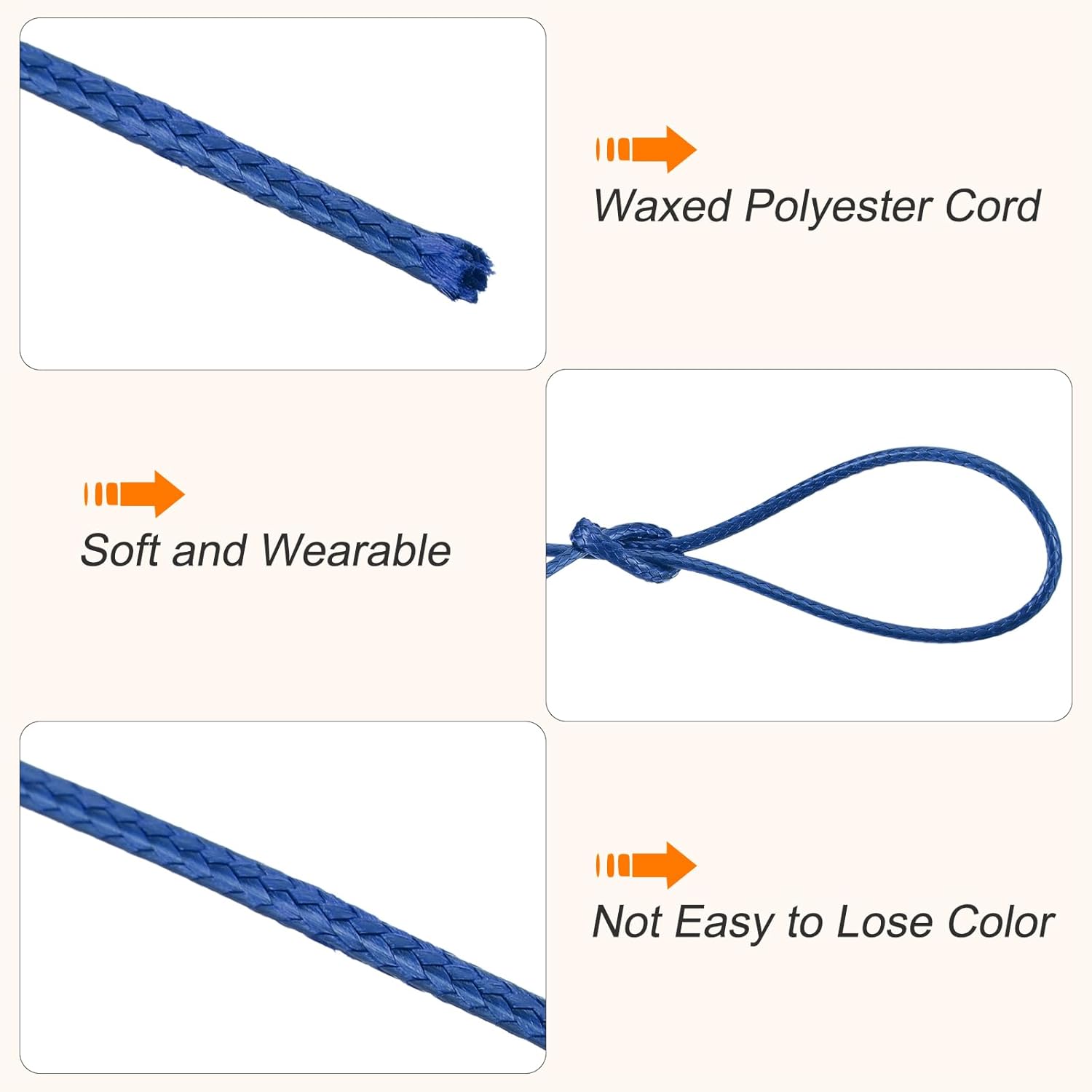 MECCANIXITY Waxed Cord 1.2mm Waxed Polyester Cord 175 Yard Wax String for Bracelet Making,Necklaces, Beading,Jewelry Making and DIY Crafts(Navy Blue)