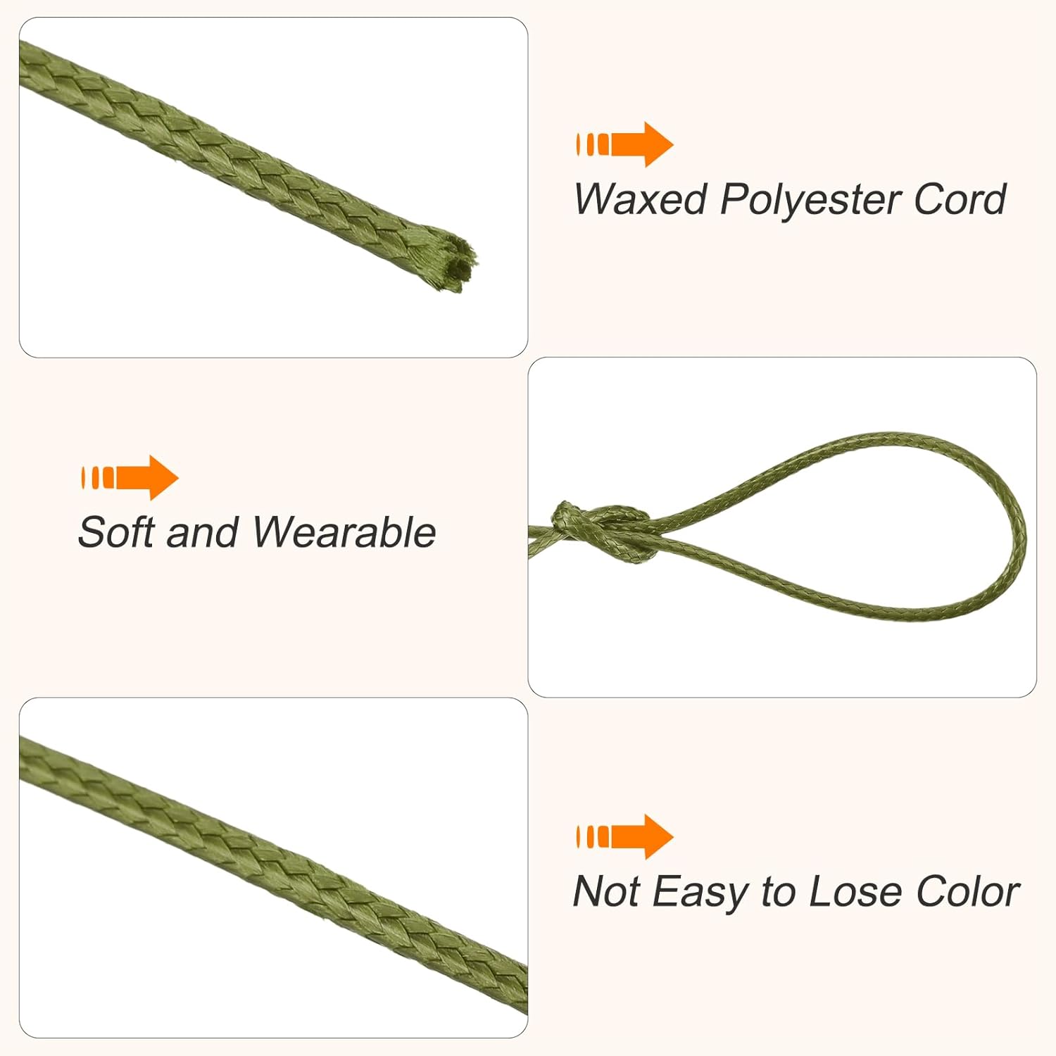 MECCANIXITY Waxed Cord 1.2mm Waxed Polyester Cord 175 Yard Wax String for Bracelet Making,Necklaces, Beading,Jewelry Making and DIY Crafts(Olive Green)