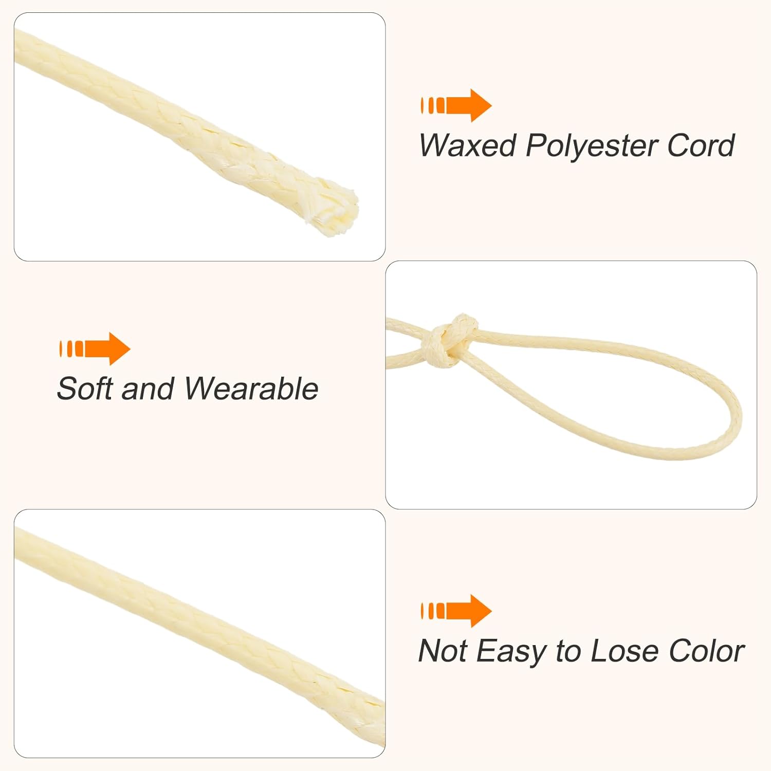 MECCANIXITY Waxed Cord 1.2mm Waxed Polyester Cord 175 Yard Wax String for Bracelet Making,Necklaces, Beading,Jewelry Making and DIY Crafts(Beige)