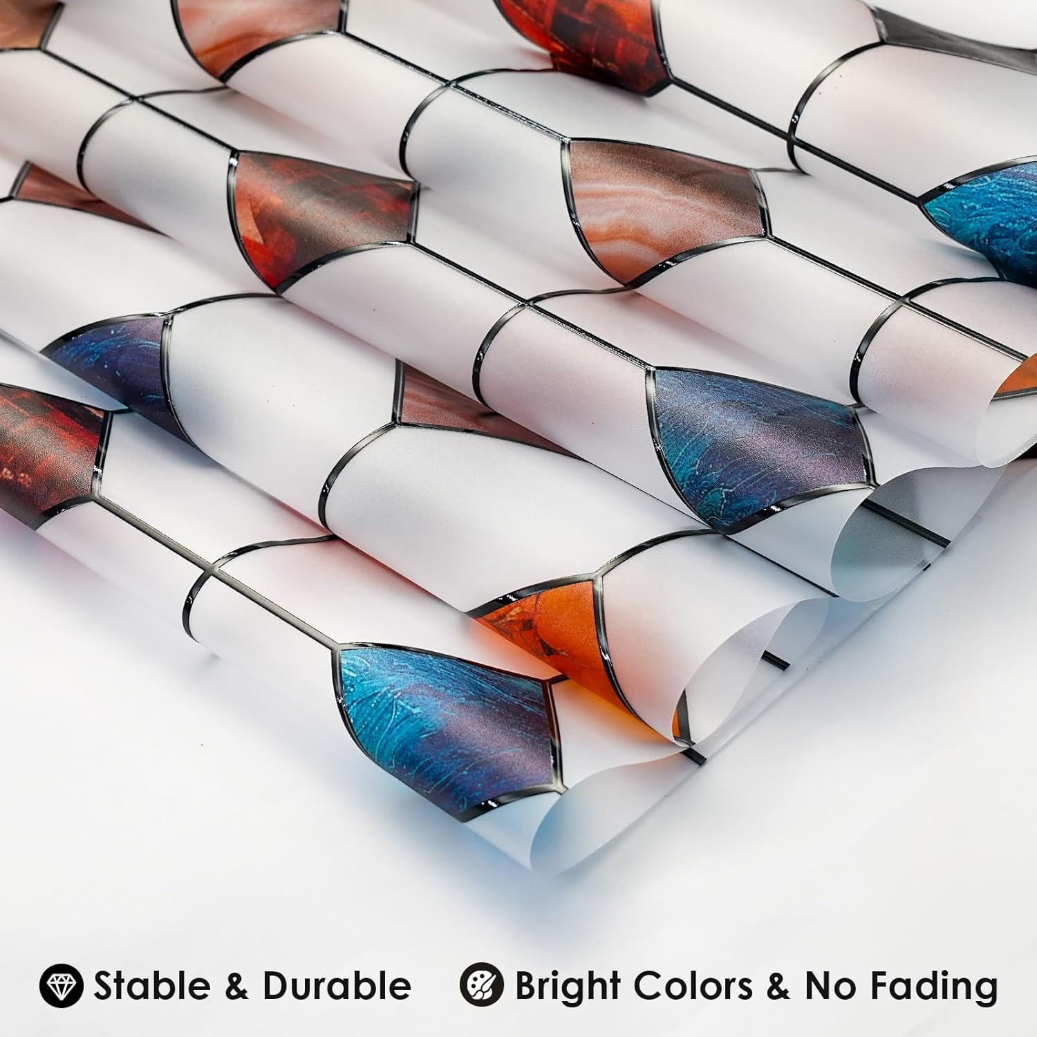 DKTIE Stained Glass Window Film Geometric Patterns, Fine Frosted Window Clings for Glass Windows, Waterproof for Bathroom Window Privacy Film Day and Night (S533, 35.4in X 118.1in)