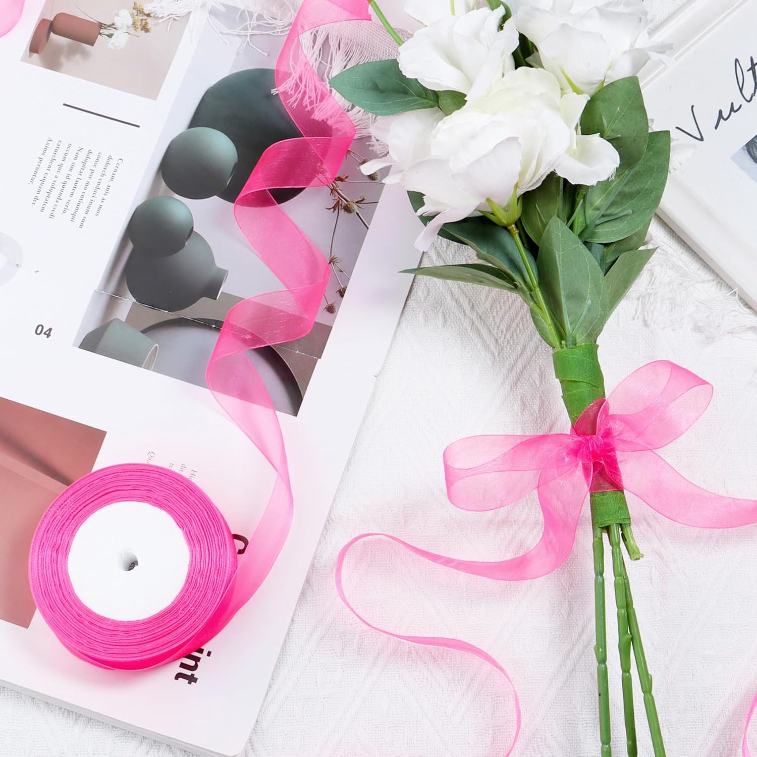- OUTSTANDING DESIGN: These hot pink organza tulle ribbons are made of chiffon fabric. Our see-through mesh ribbon with a slight sheen will add an elegant and luxurious touch to your gift, beautiful and lovely, with neat edges, has an innate sturdiness to hold different shapes and is very sturdy.