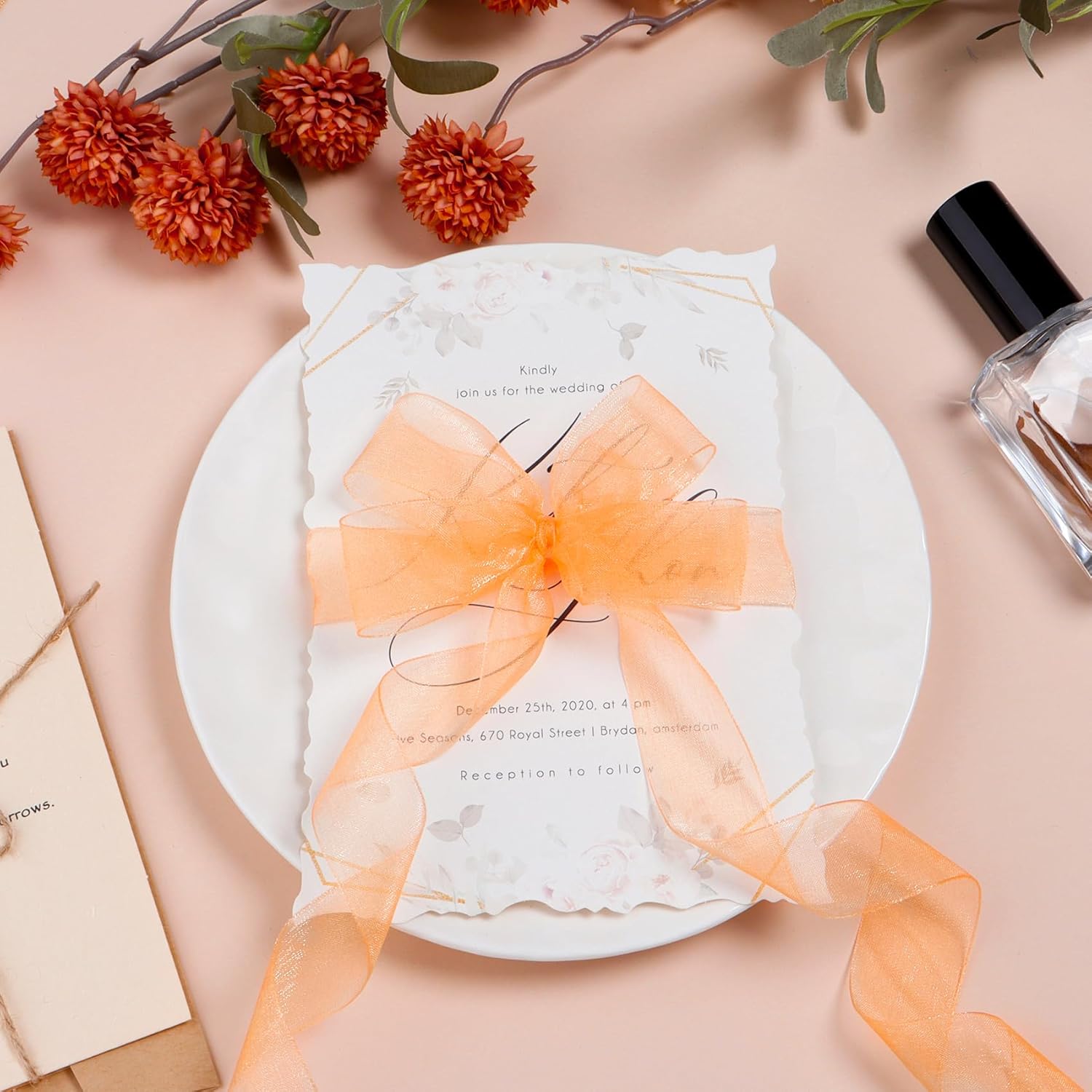 - OUTSTANDING DESIGN: These orange organza tulle ribbons are made of chiffon fabric. Our see-through mesh ribbon with a slight sheen will add an elegant and luxurious touch to your gift, beautiful and lovely, with neat edges, has an innate sturdiness to hold different shapes and is very sturdy.