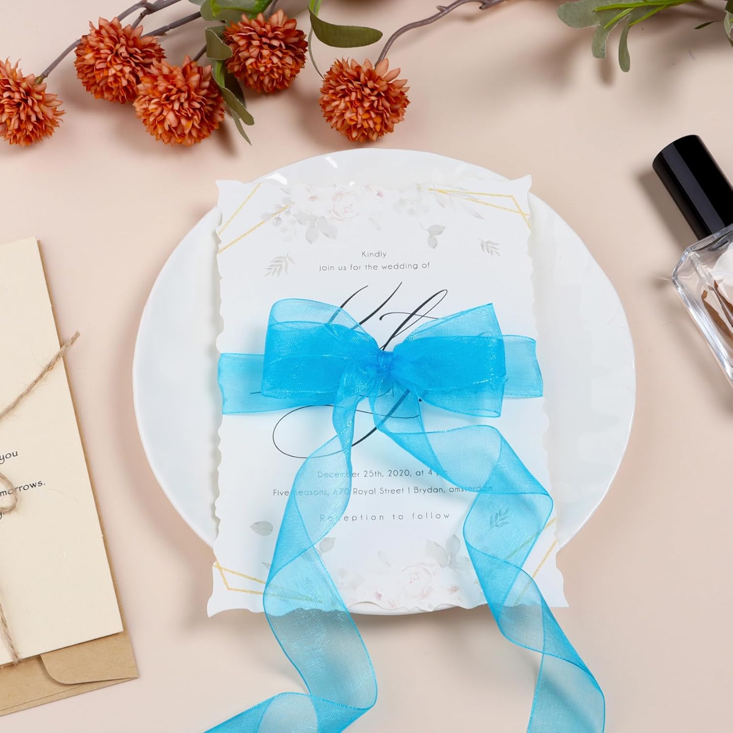 - OUTSTANDING DESIGN: These teal organza tulle ribbons are made of chiffon fabric. Our see-through mesh ribbon with a slight sheen will add an elegant and luxurious touch to your gift, beautiful and lovely, with neat edges, has an innate sturdiness to hold different shapes and is very sturdy.