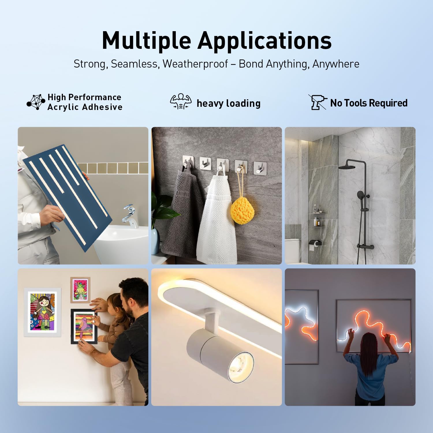 - APPLICABLE SURFACES: Double Sided Foam Tape bonds effectively with various substrates, including aluminum, steel, glass, marble, tile, textured objects, plastics, and hardwoods. However, it’s NOT SUITABLE for painted dry walls, as it may remove wall paint upon removal. Its unique viscoelastic properties provide strong adhesion to both high and low surface energy materials, making it ideal for diverse projects.