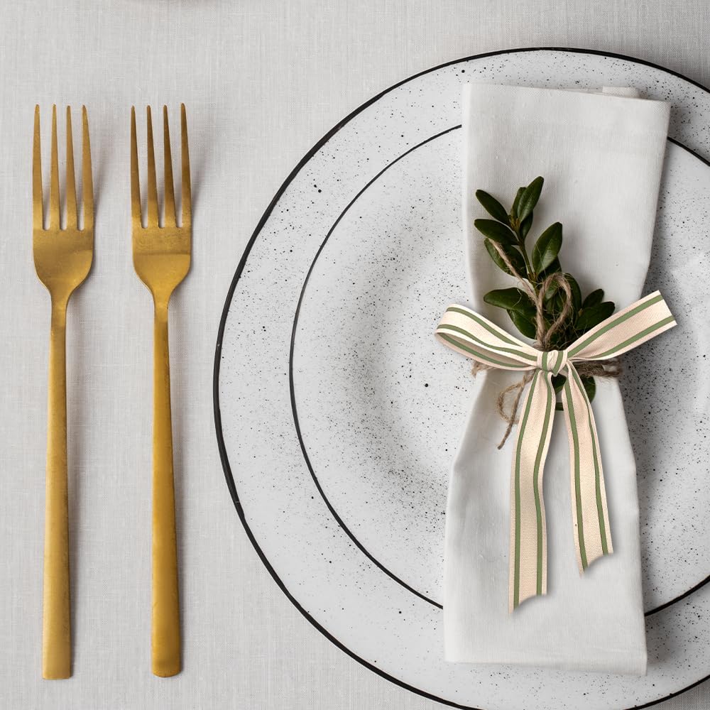 10 Yards × 3/5 Inch Green Natural Cotton Ribbon, Double Sided Webbing Straps Ribbons, Birthday Wedding Valentines Ribbons for Crafting, DIY Sewing, Gift Wrapping