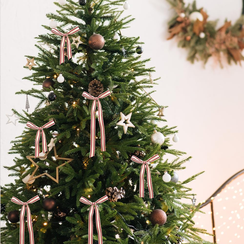 - CLASSIC DESIGN: This holiday craft ribbon features a natural red striped pattern with a webbing grid texture, making it perfect for Christmas decorations; Natural heavy duty design can bring joy and celebration to any project, suitable for people of all ages