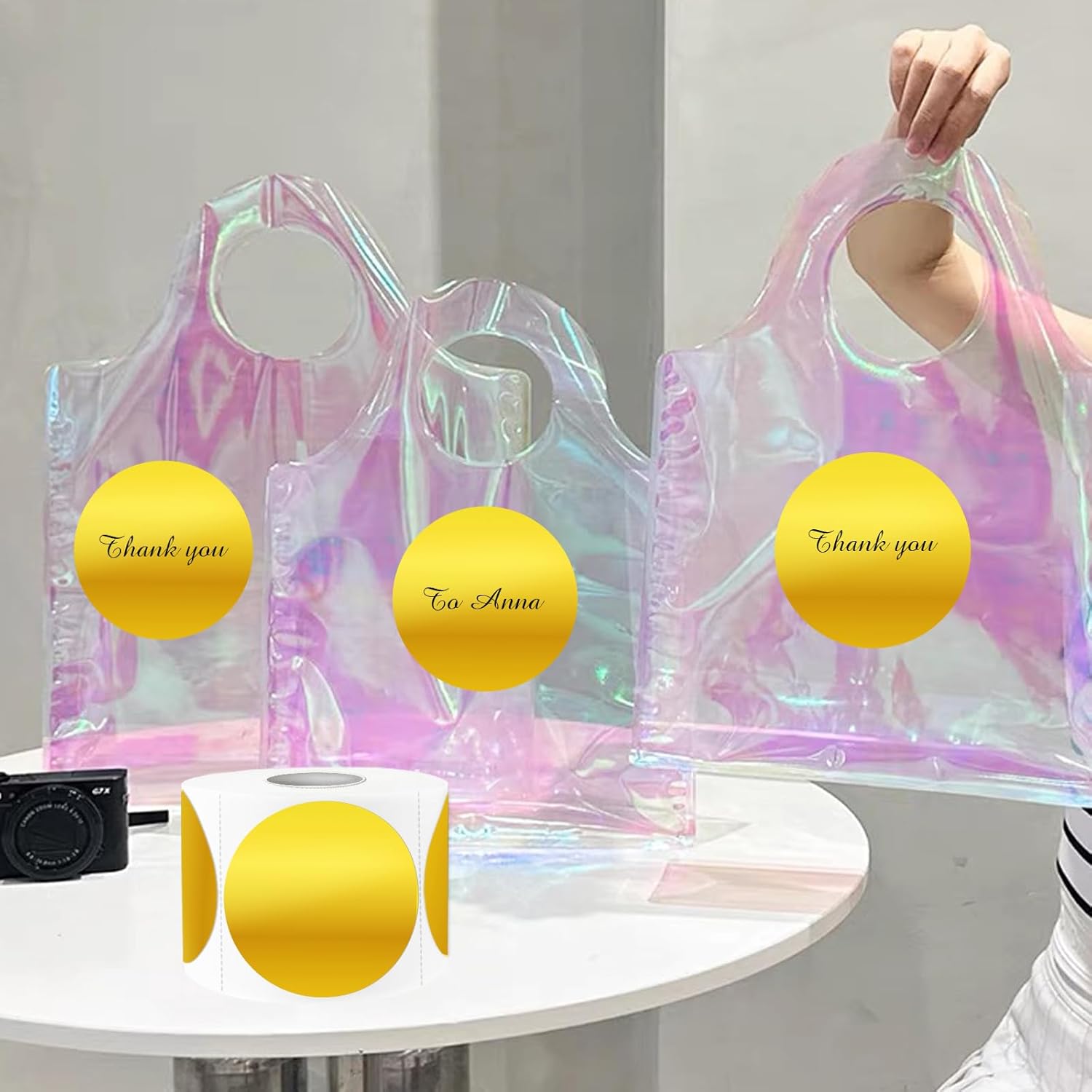 - Holographic Gold Thermal Sticker Labels: Printed on rainbow metallic vinyl, the color of the surface of the sticker can be changed under the light with the move, which is beautiful and charming! Our holographic stickers offer an amazing visual experience like and leave a remarkable impression