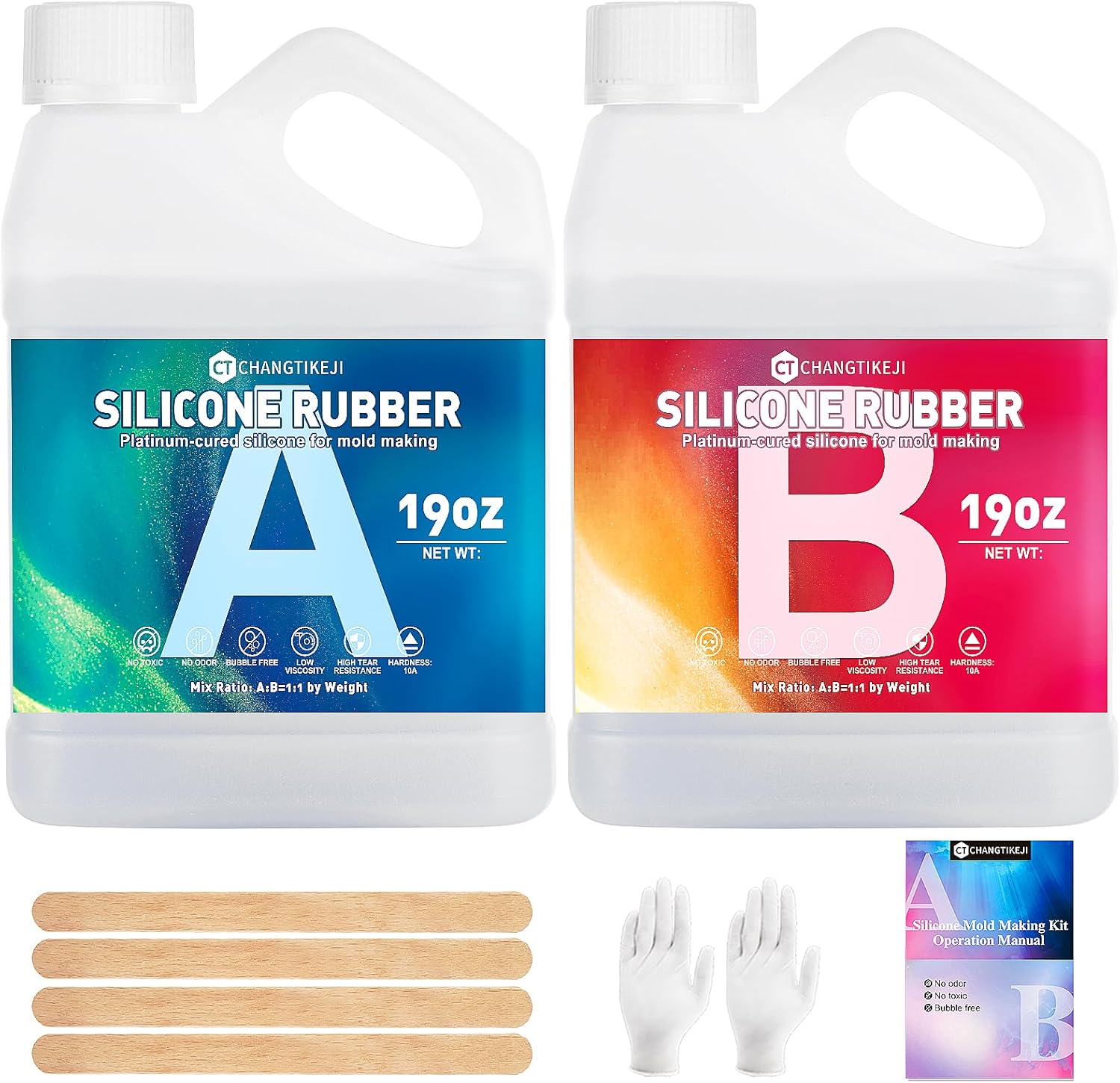 CHANGTIKEJI Silicone Mold Making Kit, 38.8oz 10A Elastic Liquid Silica Gel for Casting Resin molds and Candle & Soap Mold,Fast Cure Translucent Platinum Silicone Rubber