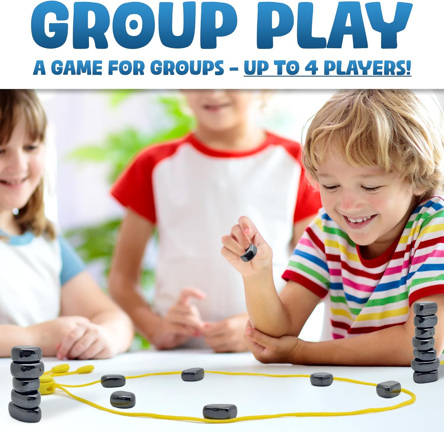 Upgraded (Multi-Level) Magnet Chess Game with String & Stones - Clear & Simple Instructions | Premium Set with 20 Larger & Stronger Stones, Adjustable Rope, 2 Dice & Travel Pouch | for Kids & Adults