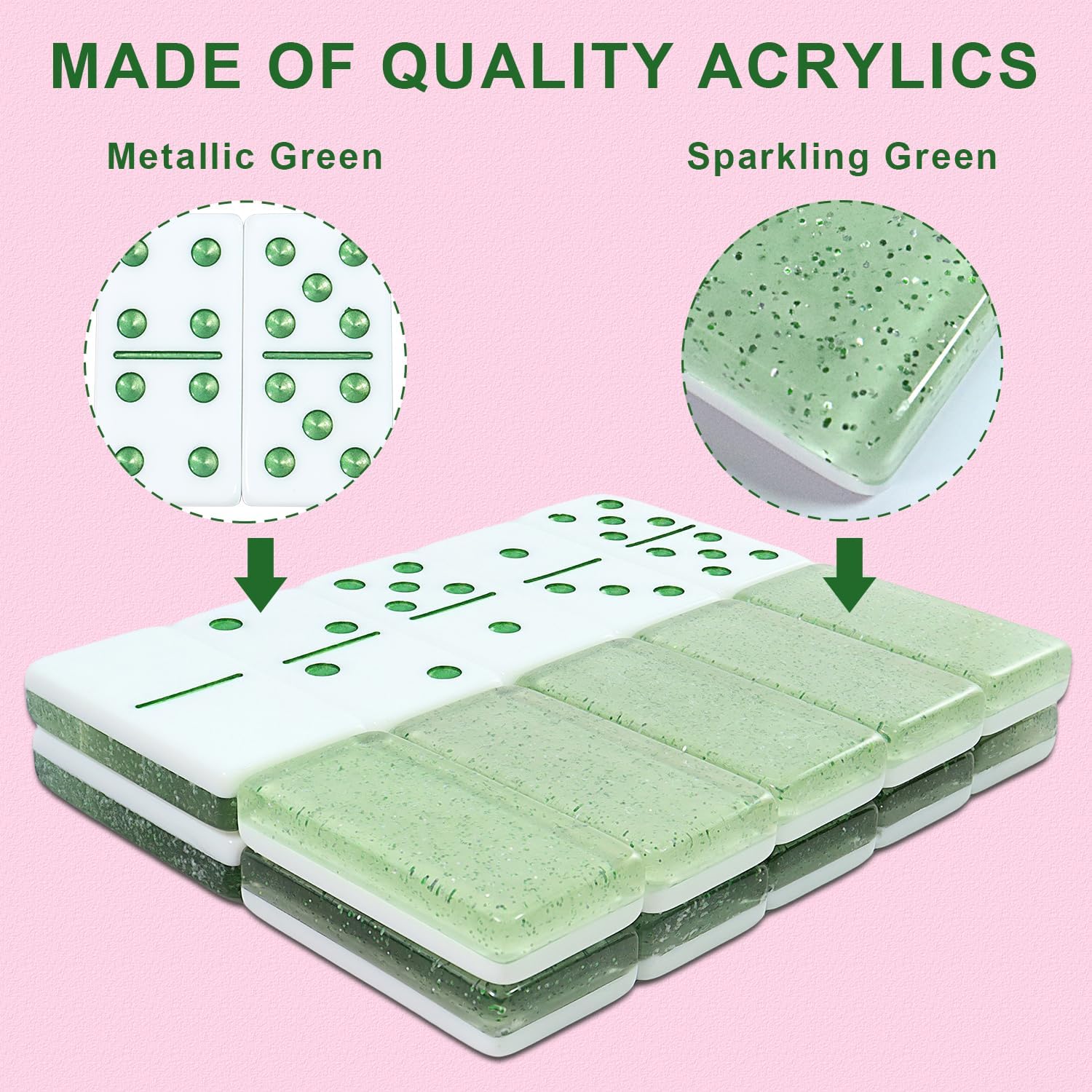 - [STURDY CONSTRUCTION] : Each pair of six dominoes are made of high-quality acrylic material, Durable and not easy to fade you can use them for years to come. Tiles dot has high-quality eco paint, It can protect the domino set from wear and tear, Additionally 7 Polyhedral Dice for Dungeons and Dragons With Pink Premium Gift Box allowing it to travel anywhere.