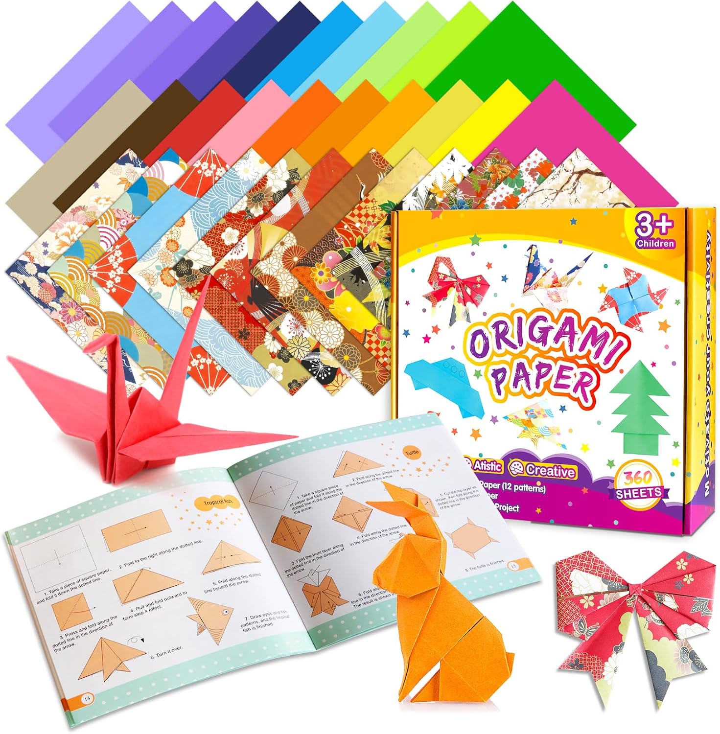Pigipigi Kids Craft Origami Paper Kit for Kids Ages 5-8 8-12, with Guiding Book, 360 Sheets DIY Art and Crafts Supplies,Colorful Folding Papers Set Projects Gifts Activity for Boy Girl Toys(Japanese)