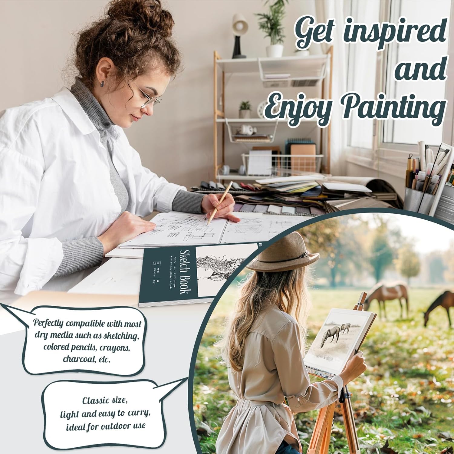- 【Versatile Drawing Supplies for Dry Media】Thick, non-yellowing paper pairs well with colored pencils, gel pens, markers and charcoal. Acid-free surface extends the life of your work. Our sketchbooks meet studio and classroom standards. A great gift for art students and creative people