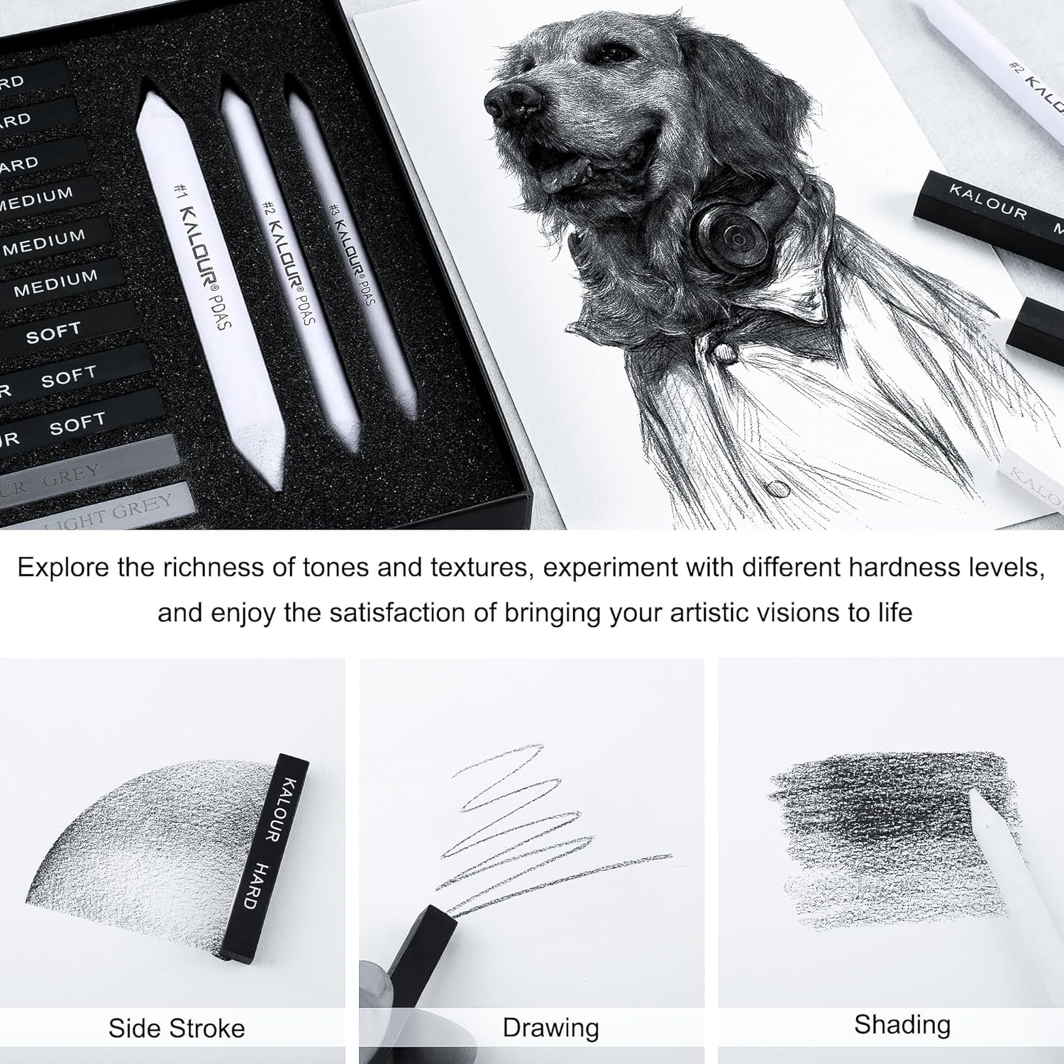 - Enhance Your Artistry: Whether you're a beginner or an experienced artist, this charcoal set empowers you to unlock your creativity and create stunning charcoal and pastel artworks. Explore the richness of tones and textures, experiment with different hardness levels, and enjoy the satisfaction of bringing your artistic visions to life.