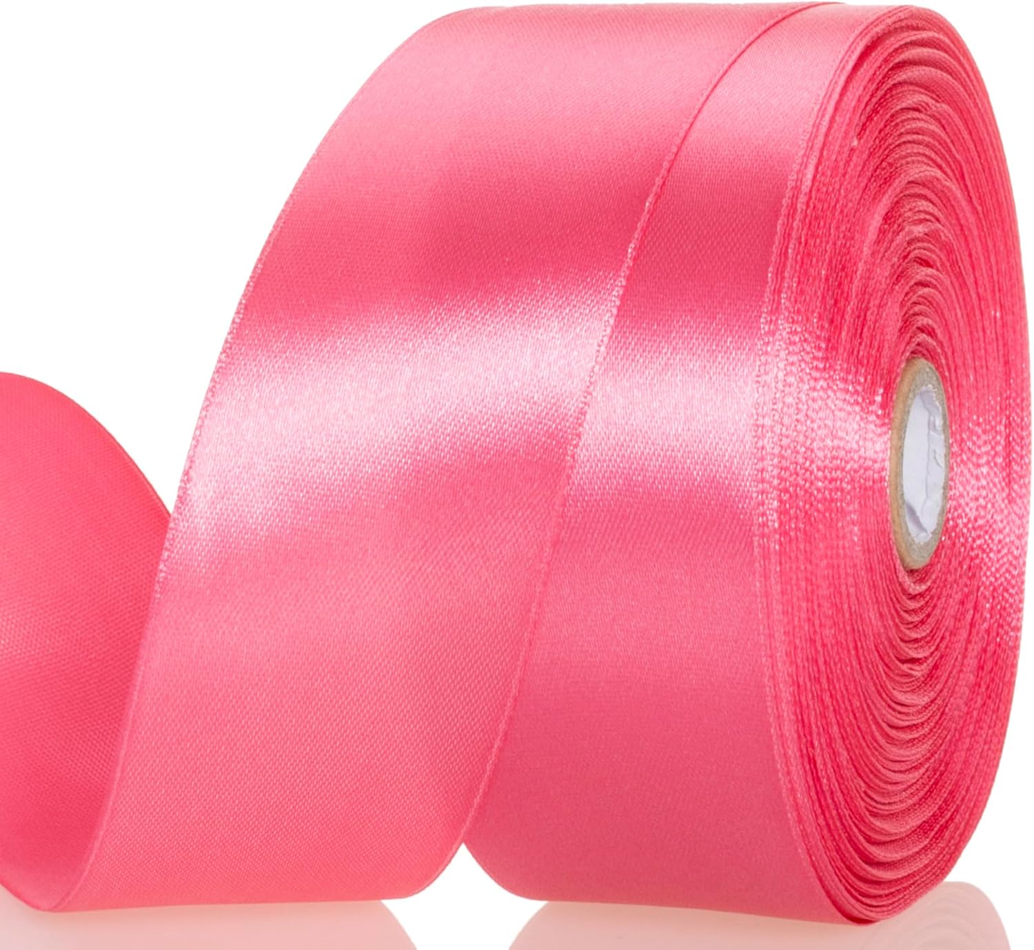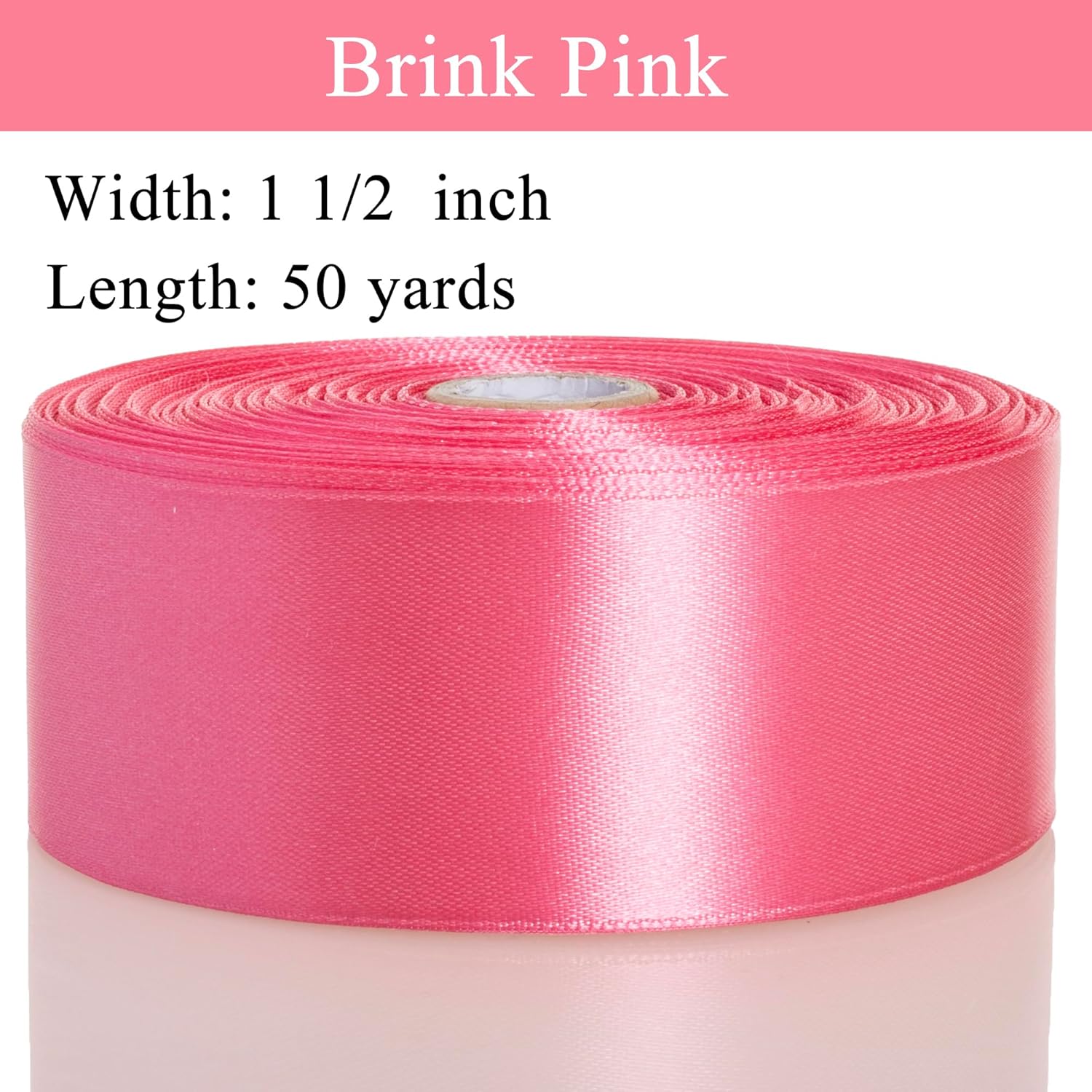 1 1/2 Inch Brink Pink Solid Satin Ribbon, 50 Yards Craft Fabric Ribbon for Gift Wrapping Floral Bouquets Wedding Party Decoration