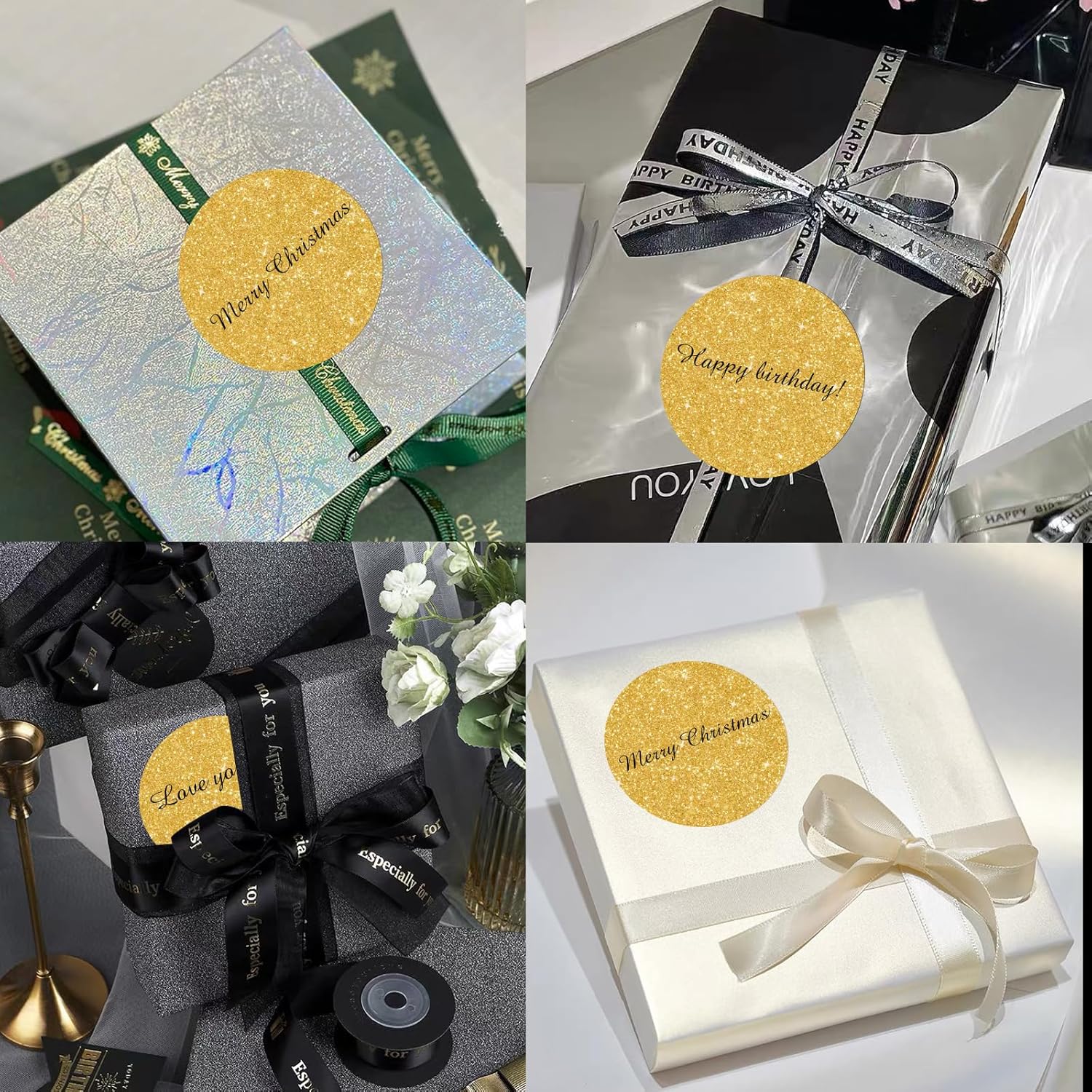 3" Holographic Direct Thermal Label Stickers, Round Printable Rainbow Glitter Thermal Printer Sticker Labels for Gift Wrapping, Self-Adhesive DIY Custom Logo Design- Shiny Gold