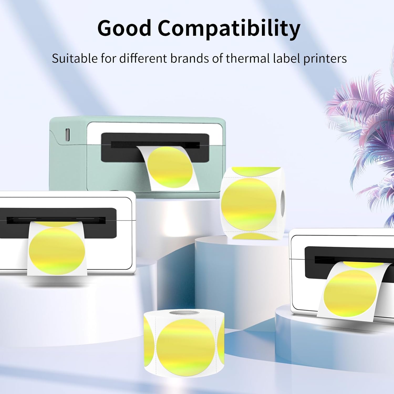 - Package: Holographic Thermal Sticker Labels 2" Round, 300 Labels/Roll. Itβs printable with a thermal printer, No ink toner or ribbons are needed