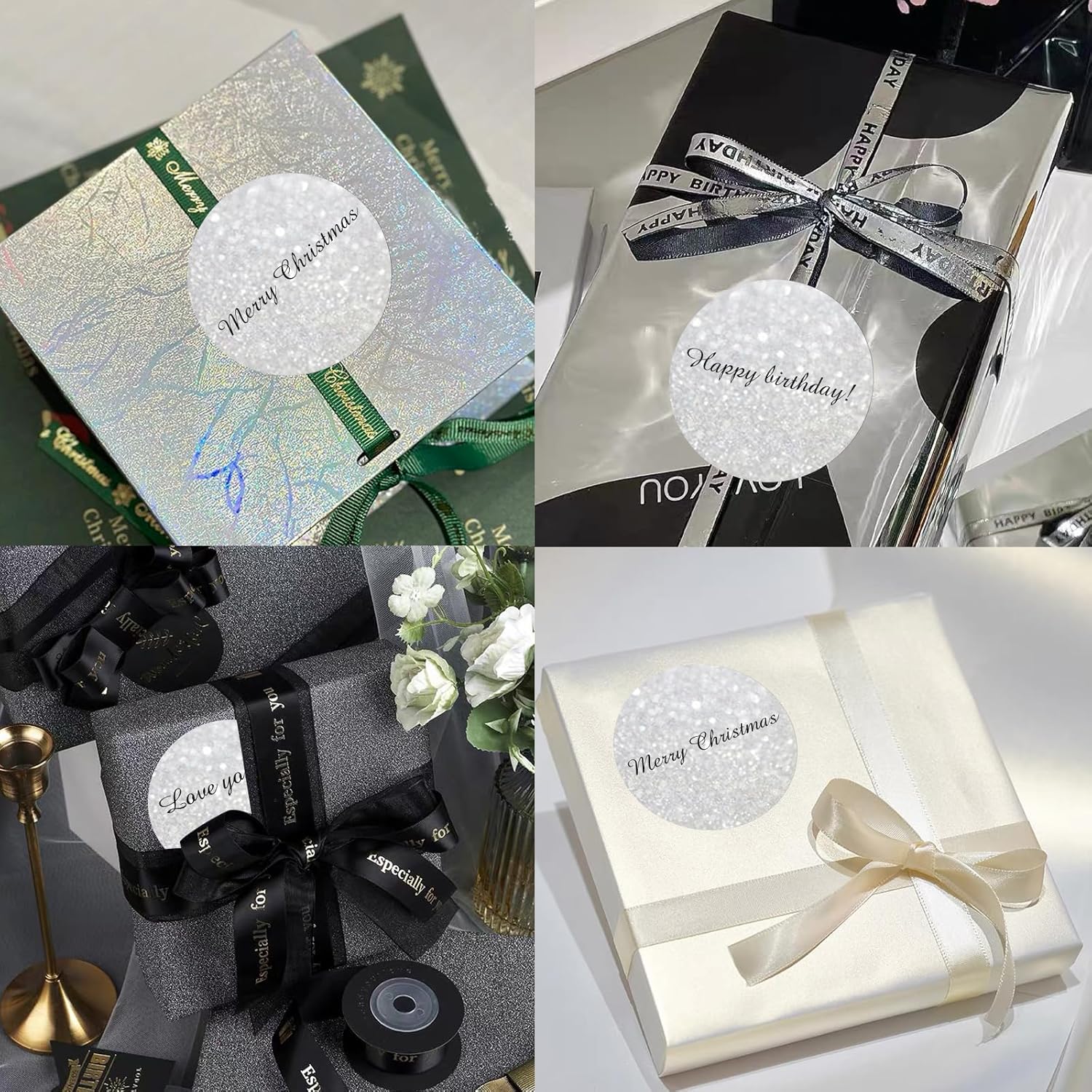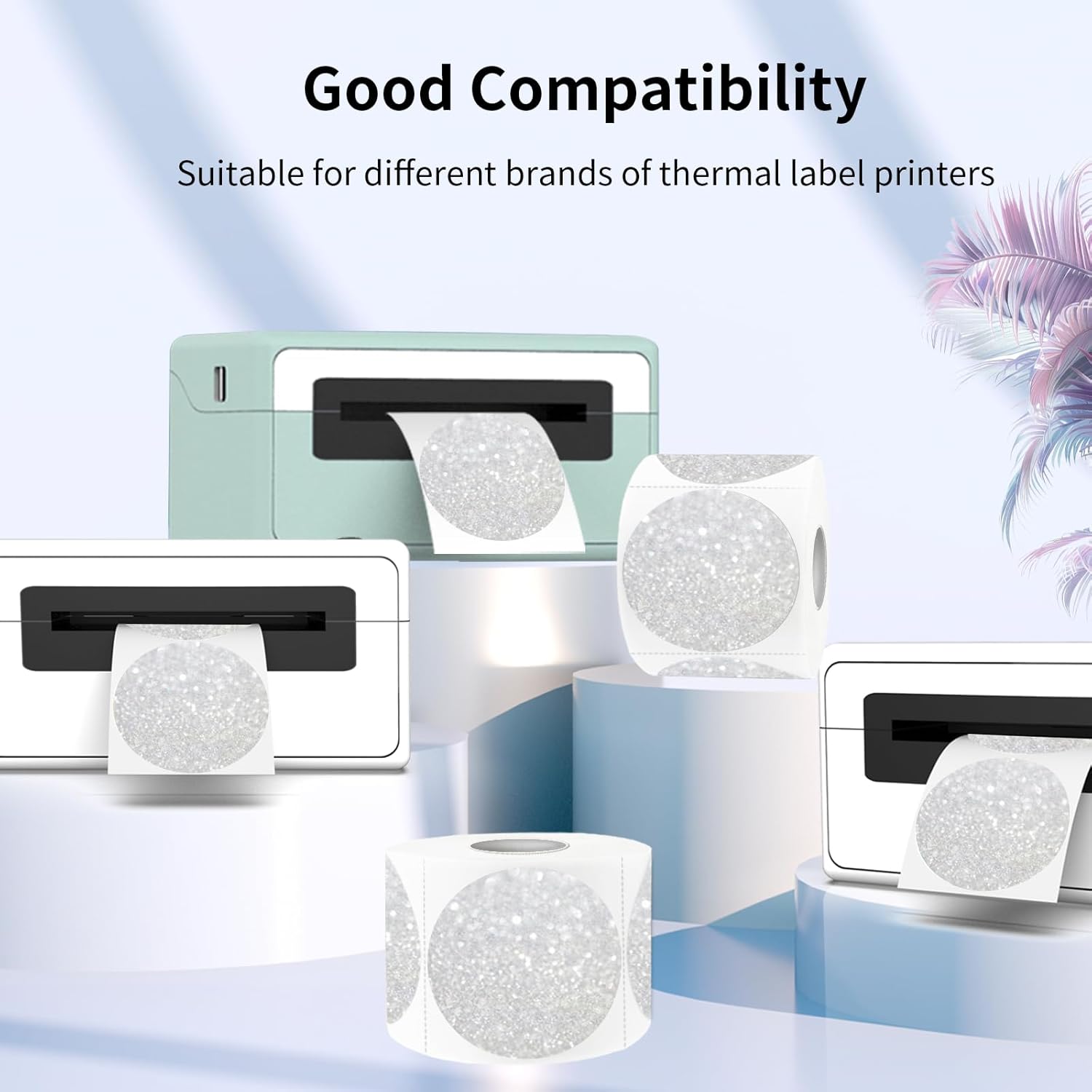 3" Holographic Direct Thermal Label Stickers, Round Printable Rainbow Glitter Thermal Printer Sticker Labels for Gift Wrapping, Self-Adhesive DIY Custom Logo Design- Shiny Silver