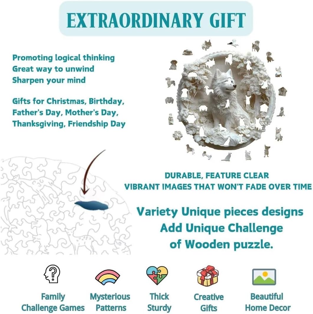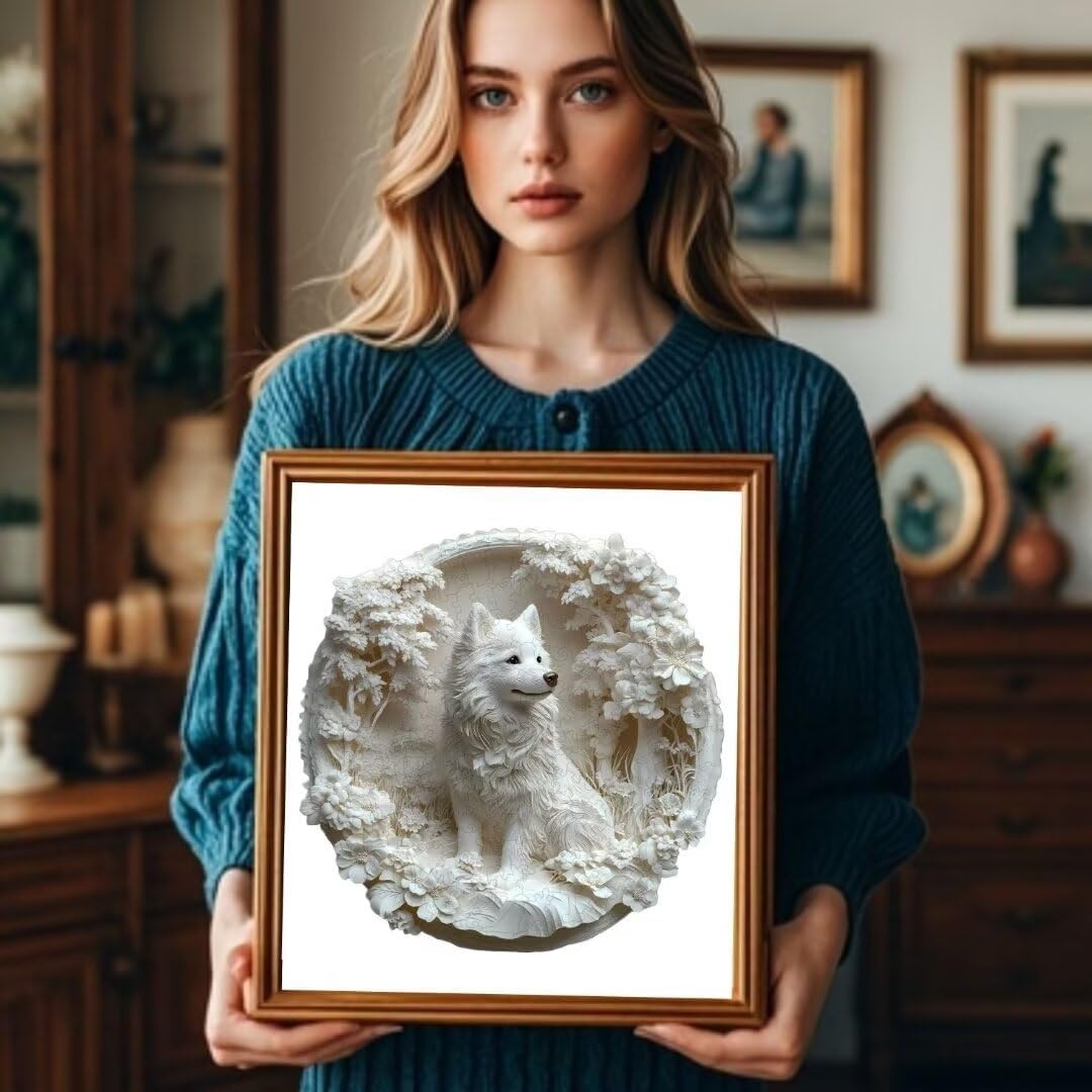 Wooden Puzzles Adults, 3D Paper Samoyed Dog Wooden Puzzles 100 Pieces, Unique Animal Shaped Wood Challenging Jigsaw Puzzles Gifts for Adults, 8.5x8.3in