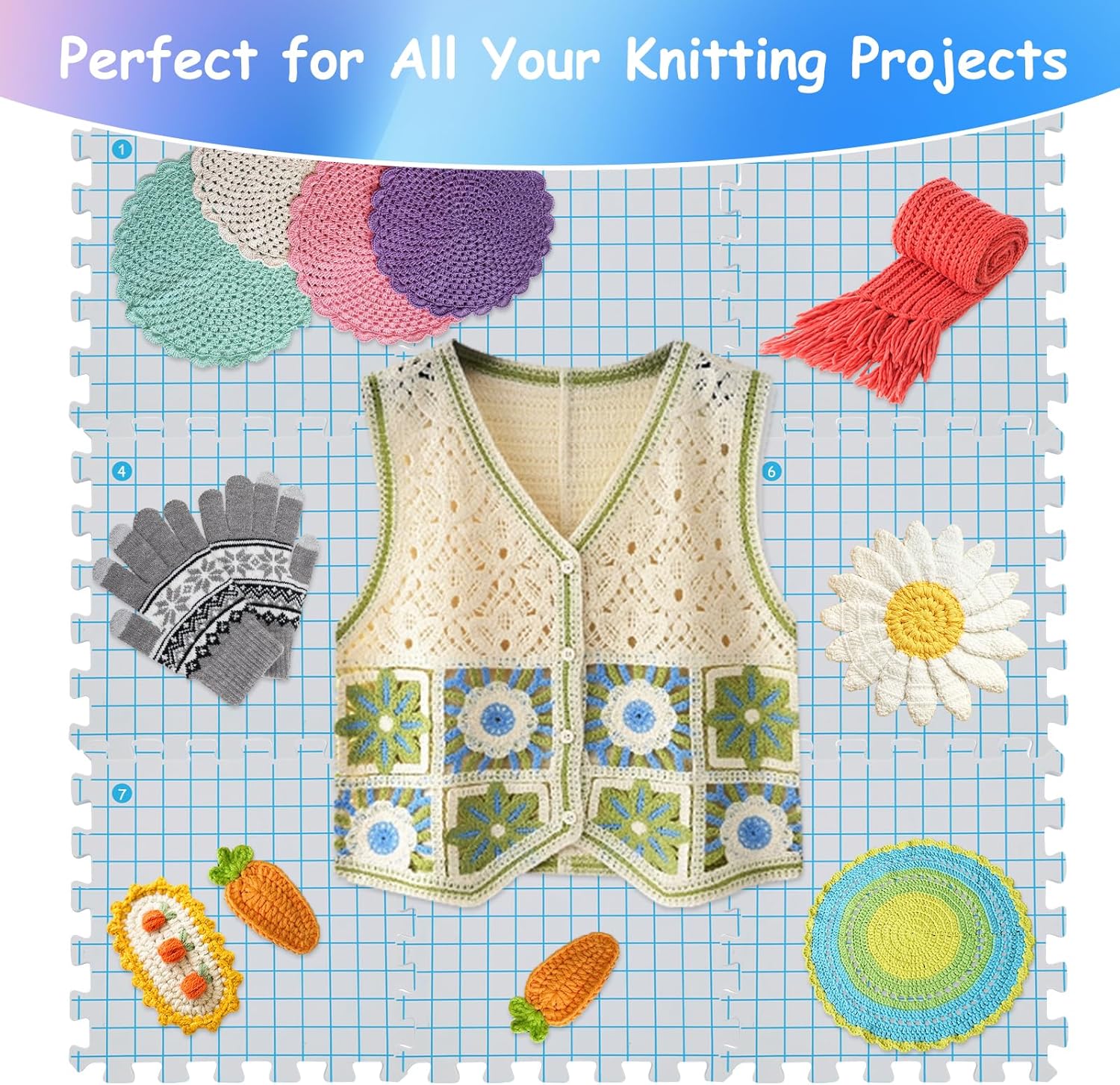 - ๐งถ[Universal for All Projects] - The size of individual knit blocking mats is 12*12 inch, you can assemble them into any shape as your crochet projects need. 1 inch grids are perfectly aligned as preference that allows you to precisely work on your projects and professionally finish them without any doubt.