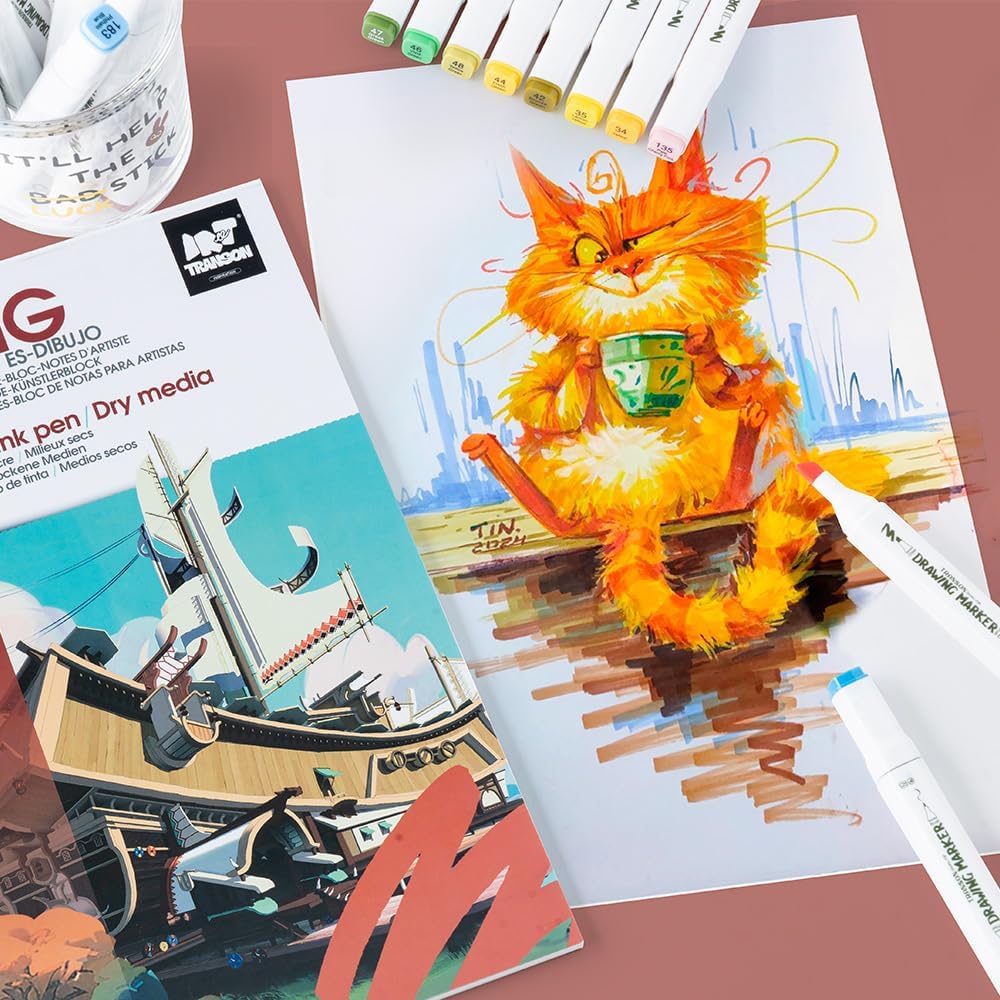 TRANSON Artist Mix Media Sketchbook Marker Pad, 8.3”x11.7” 32 Sheets A4 Art Papers, 110lb/160gsm for Painting, Drawing and Sketching